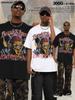 2025 Verano Transfronterizo Frankenstein Americano Street Lavado Viejo Impresión de Inyección Directa Peso Alto Cuello Redondo Manga Corta Hombre