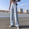 Pantalones Rectos Microelásticos de Cintura Media Regular Lavados de Primavera y Otoño Estilo Americano Retro Diseño con Línea Abierta Jeans de Pierna Ancha para Mujer a la Moda