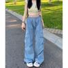 Pantalones casuales de trabajo de color liso para calle, moda americana, estilo retro, lavados, de pierna recta, holgados, de pierna ancha y largos.