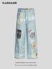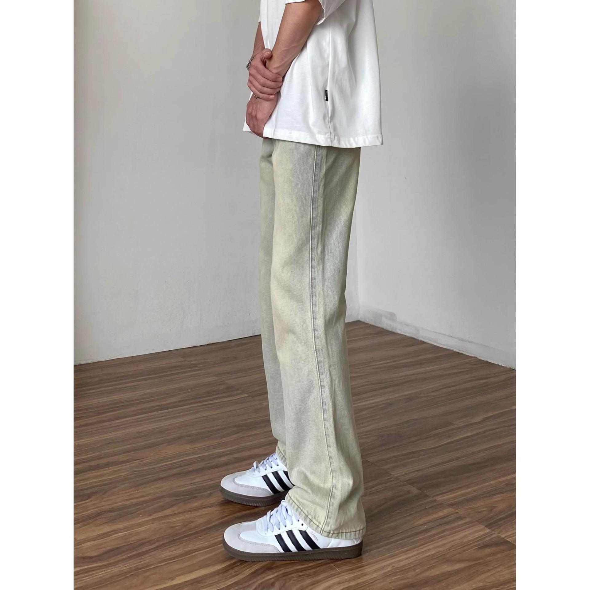 Jeans de teñido de barro amarillo lavado estilo americano para hombre y mujer, rectos, modernos, de marca, callejeros, holgados, adelgazantes, combinan con todo, pantalones casuales