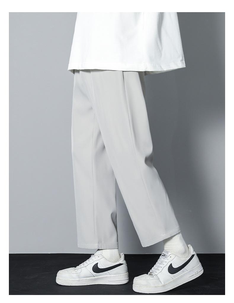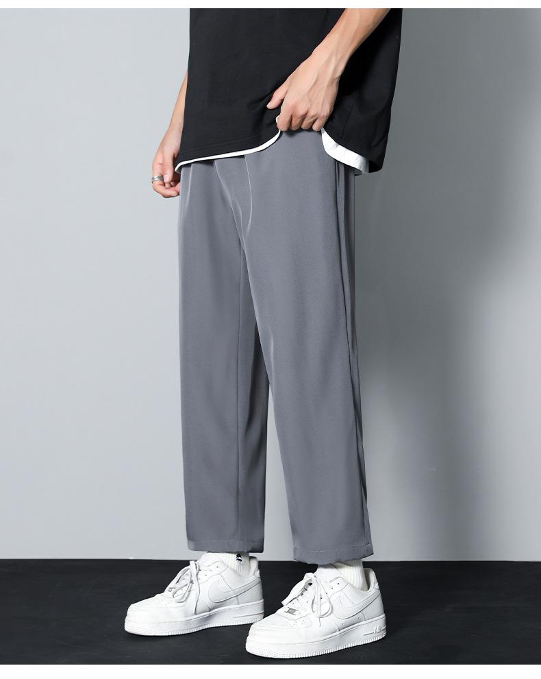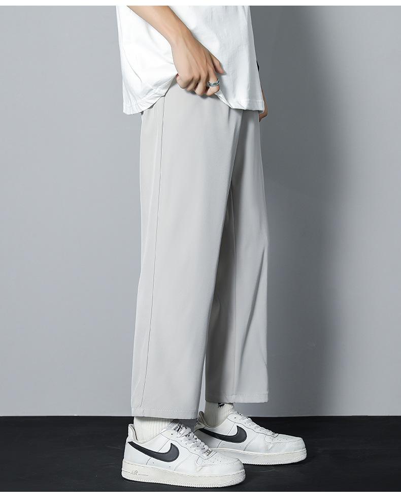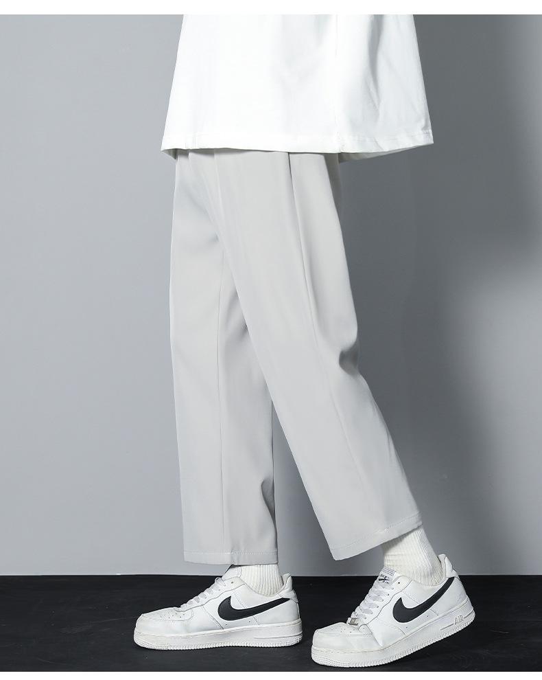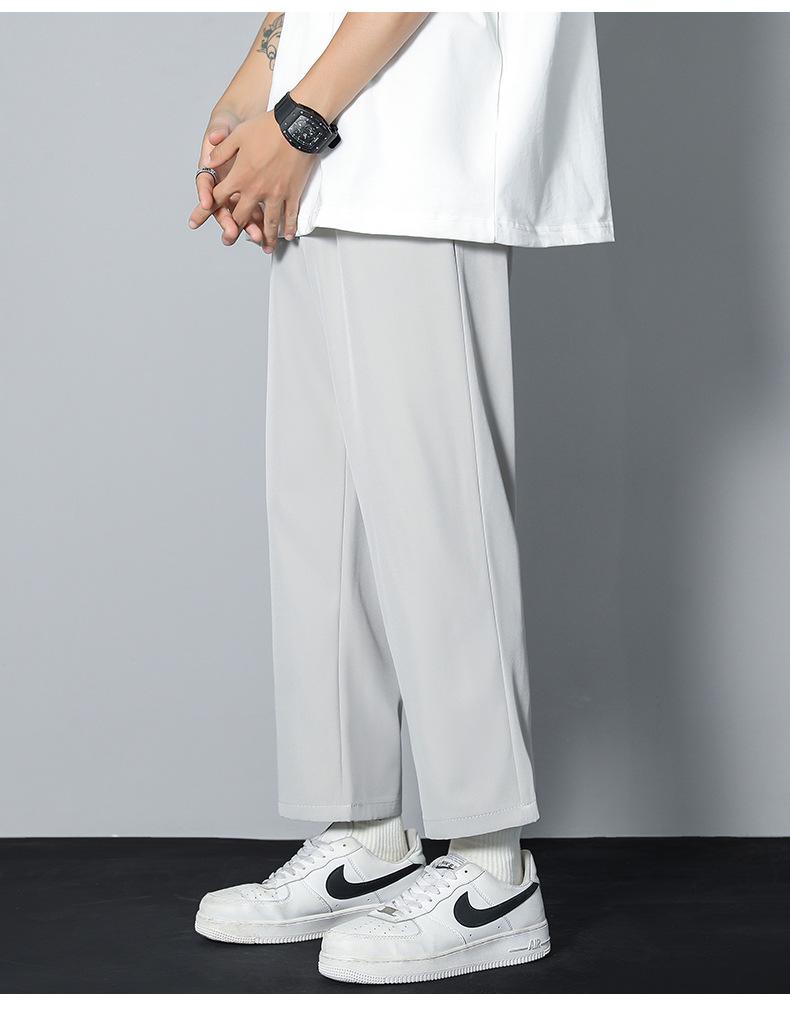 Pantalones Rectos Holgados Cortos para Hombre Verano Delgados Pantalones de Traje Nueva Moda Drapeados Pierna Ancha Seda Helada Pantalones Casuales