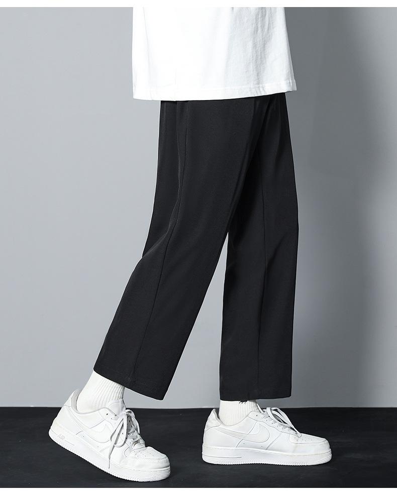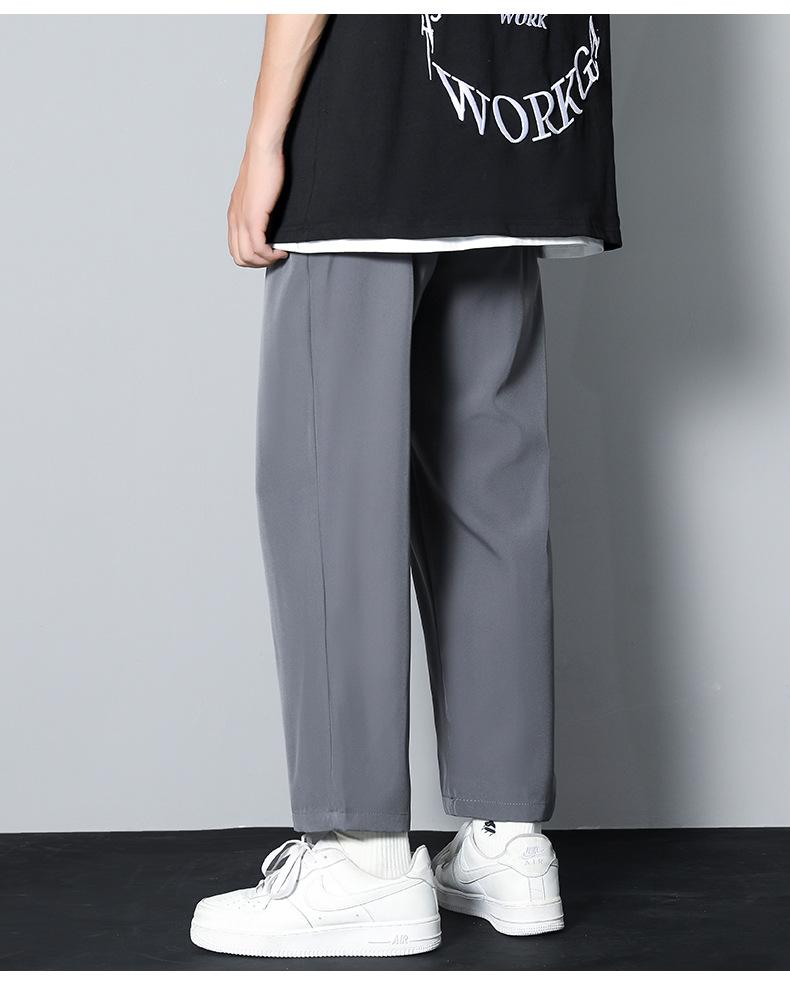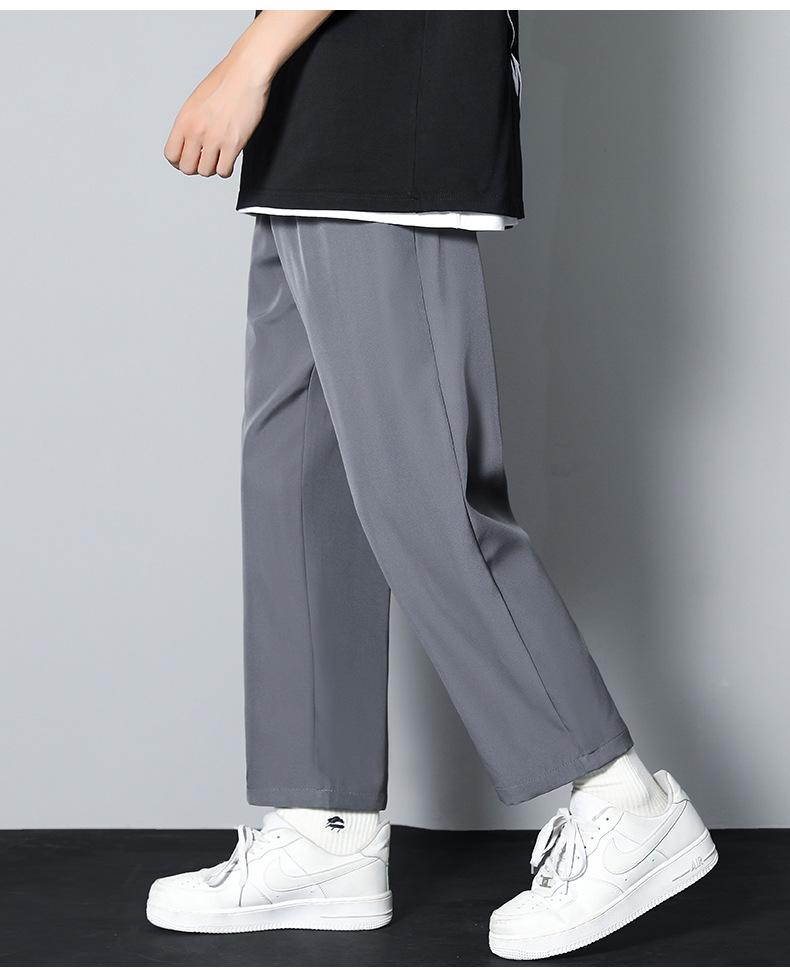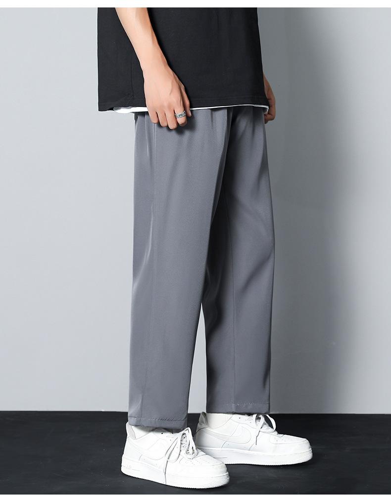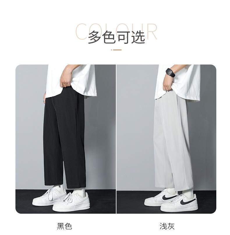 Pantalones Rectos Holgados Cortos para Hombre Verano Delgados Pantalones de Traje Nueva Moda Drapeados Pierna Ancha Seda Helada Pantalones Casuales
