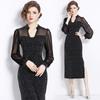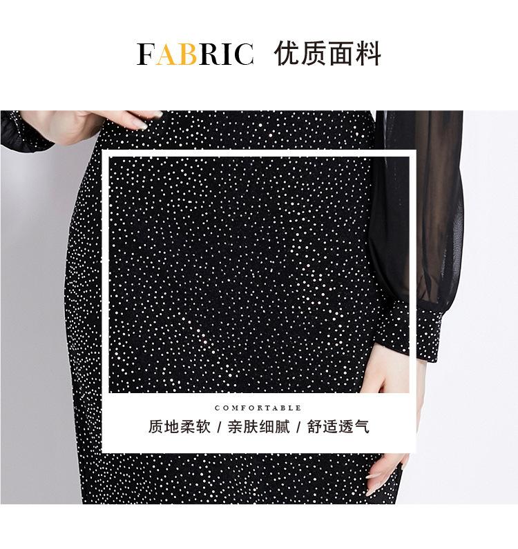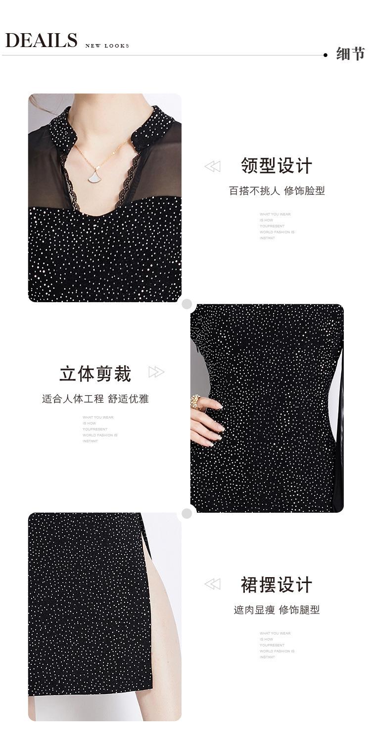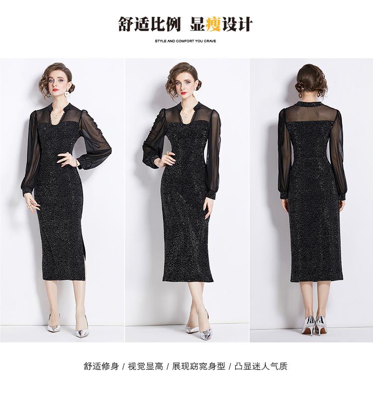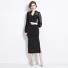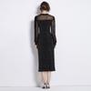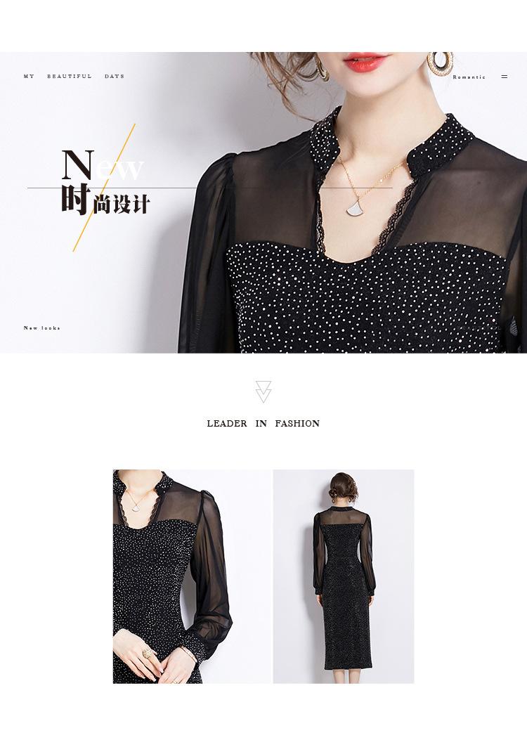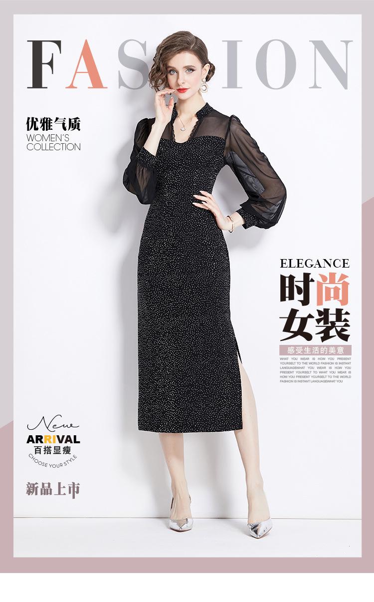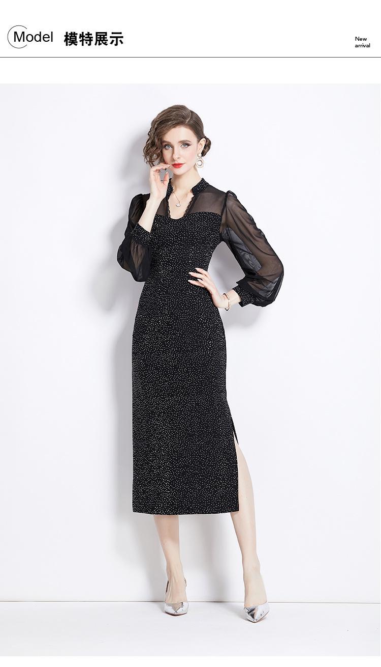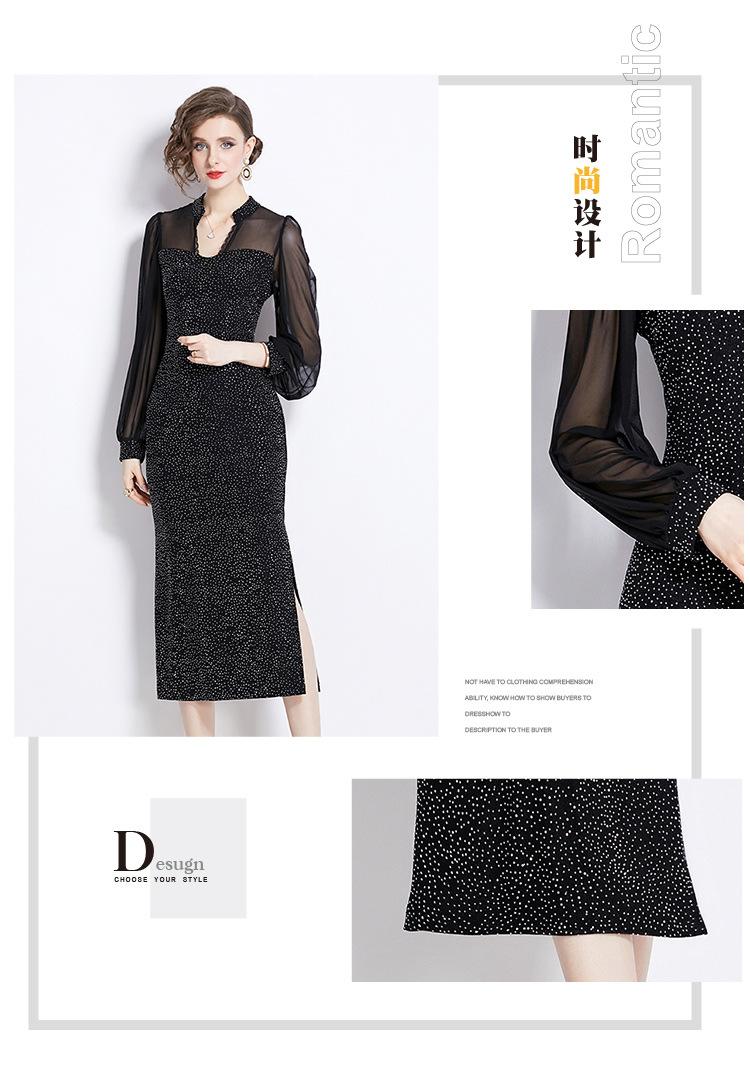 Vestido Falda Estilo Socialité Cuello V Manga Larga Diamante Caliente Vestido Negro Mujer Primavera y Verano 2024 Nuevo Estilo