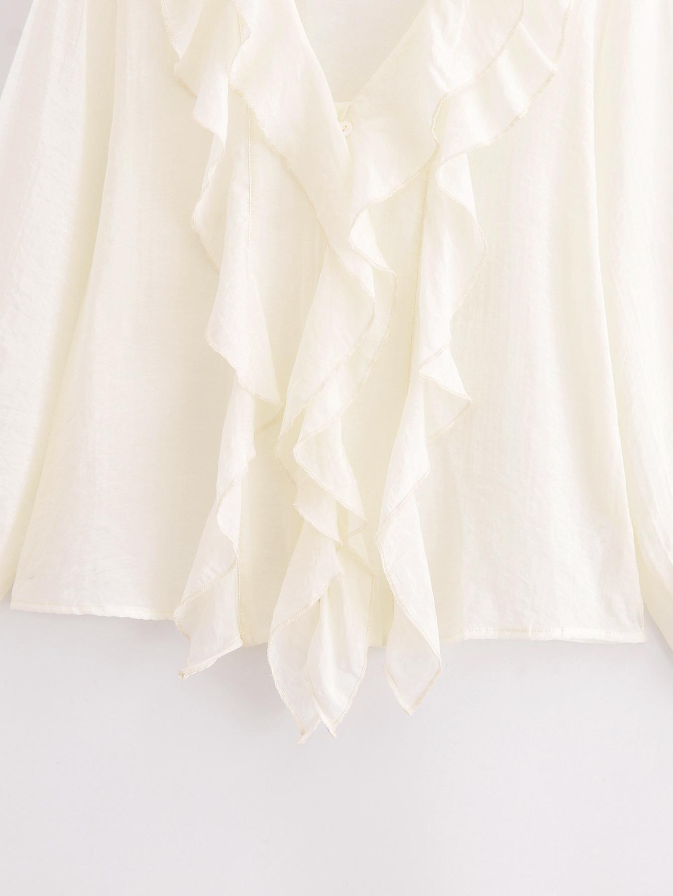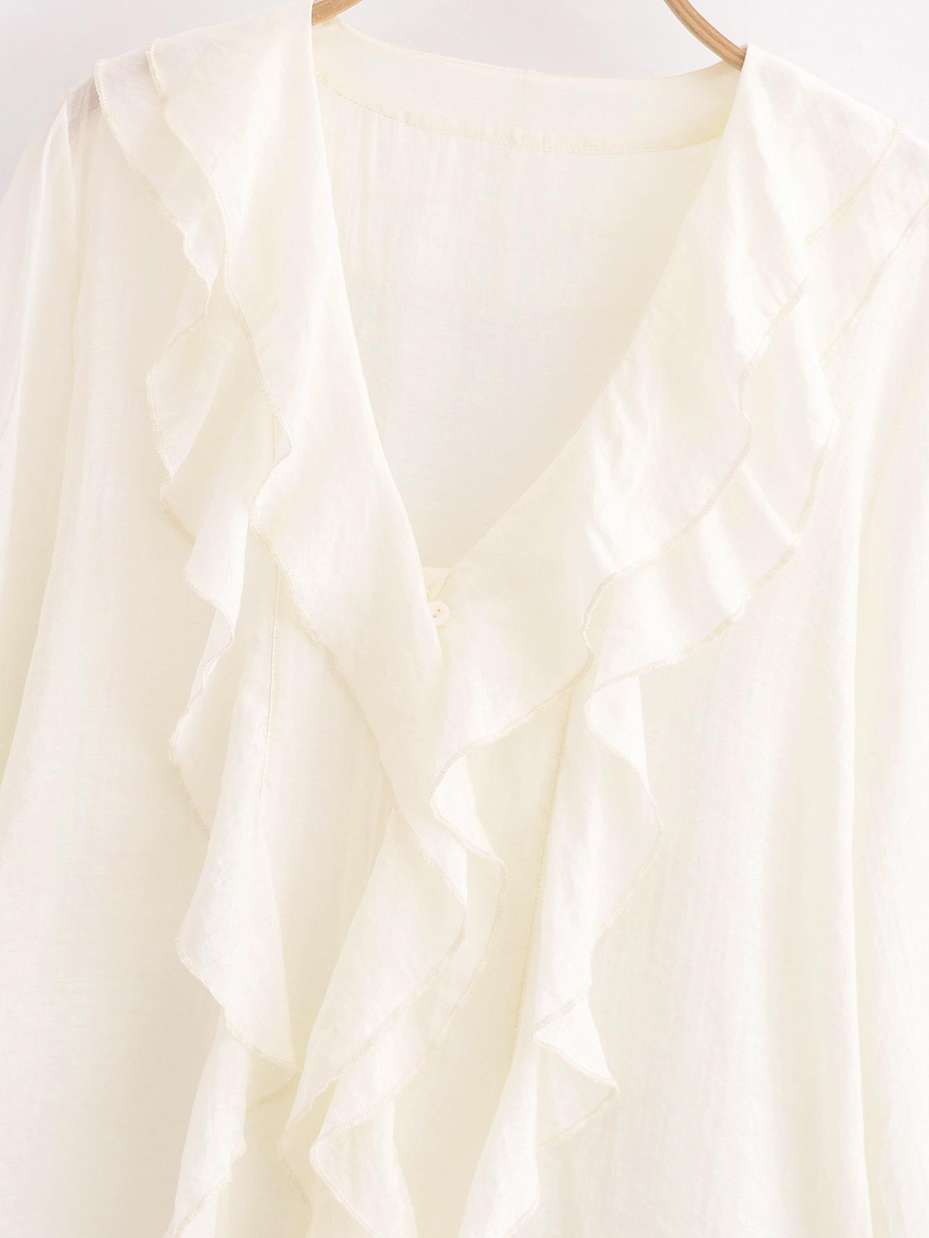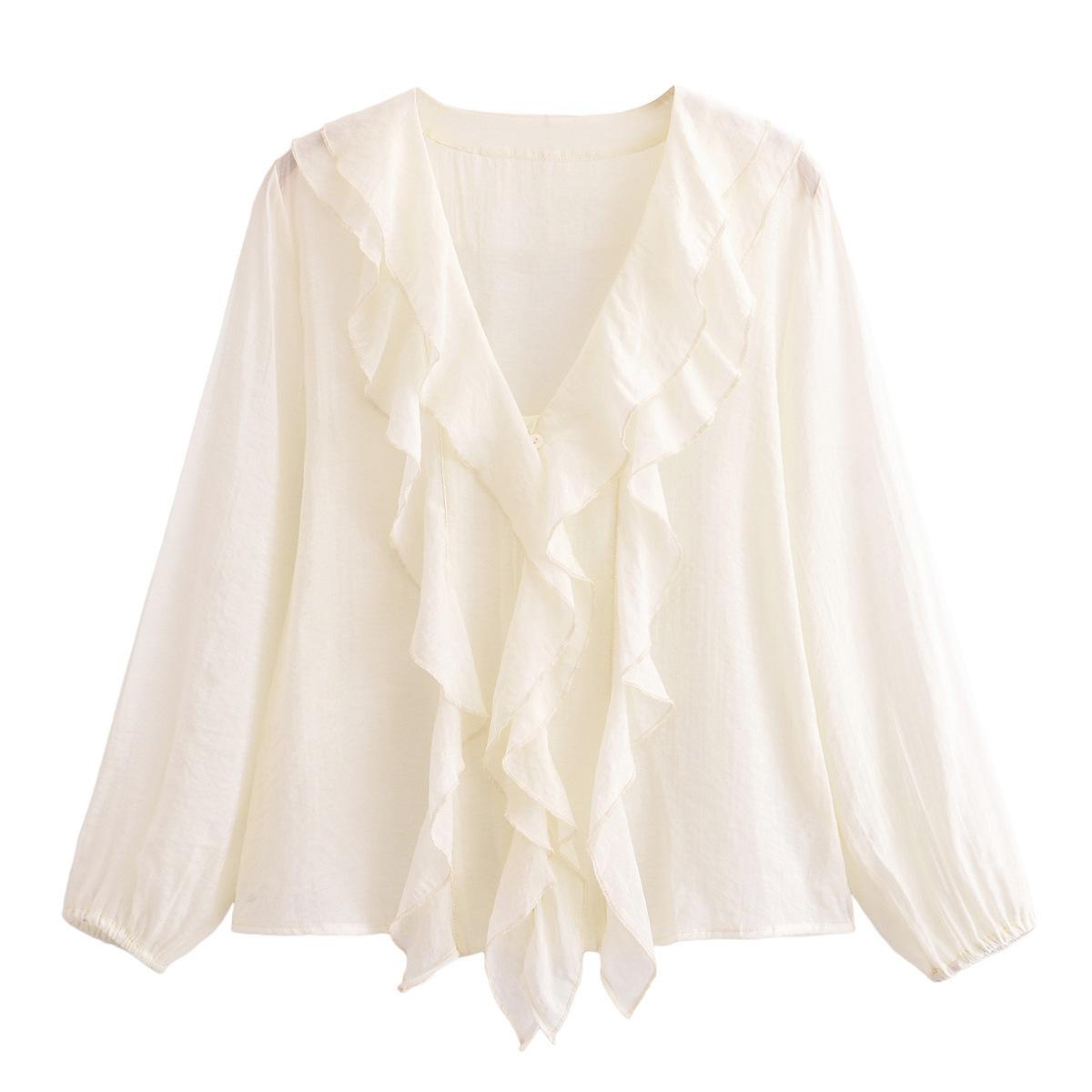 Camisa con volantes decorativos laminados de moda urbana transfronteriza europea y americana para mujer primavera 2025 w09 11189