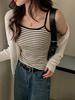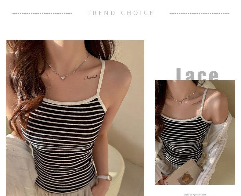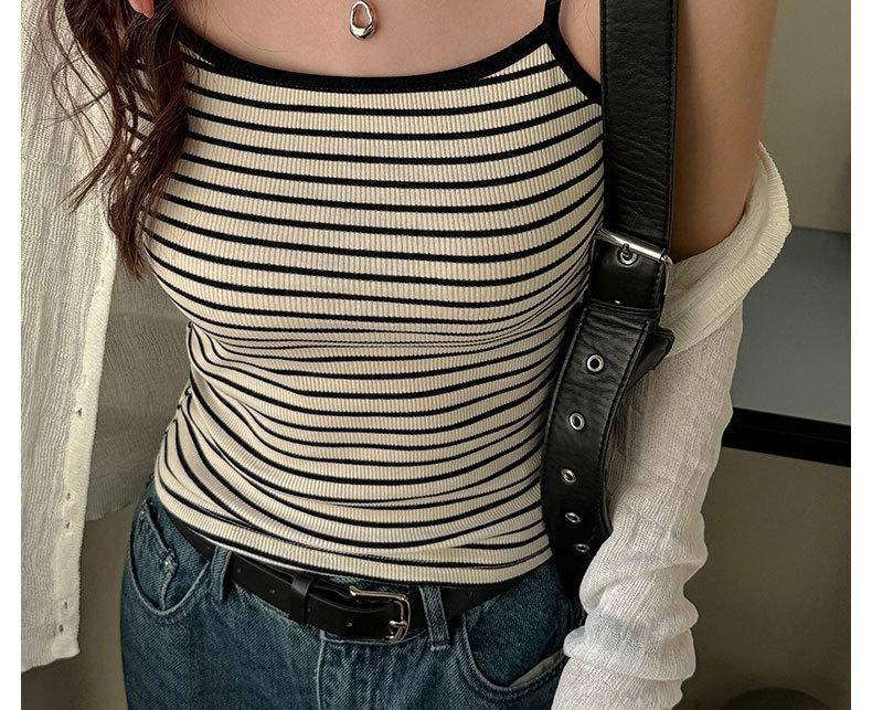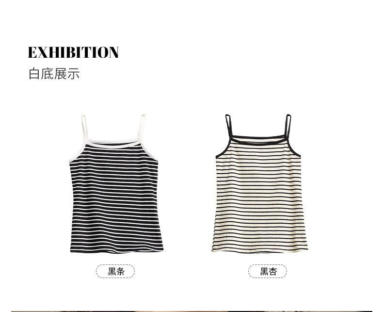Camisola de rayas negras para mujer, diseño de verano, tirantes finos, color de contraste, sin mangas, prenda interior exterior