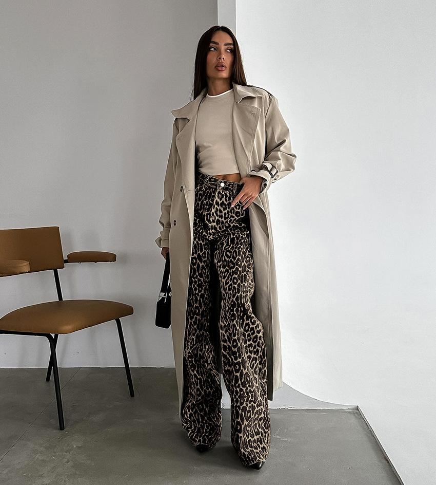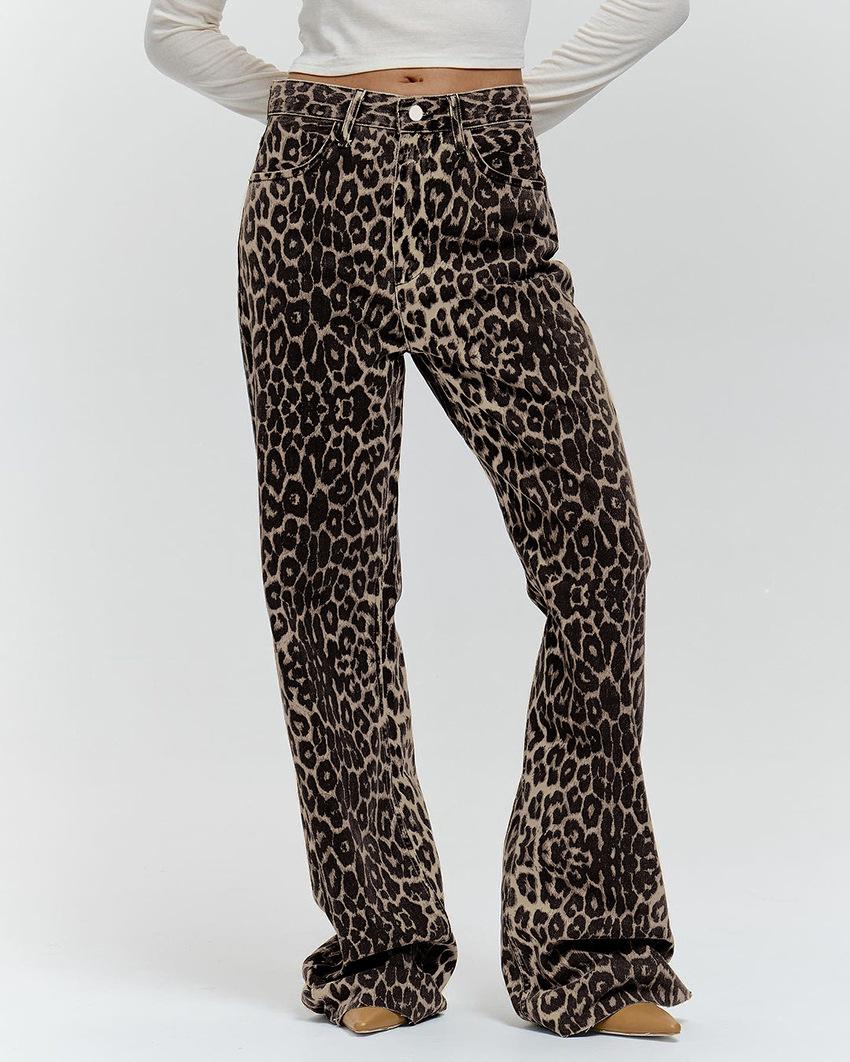 Pantalones casuales de tiro bajo y pierna ancha con estampado de leopardo estilo callejero 2024 Primavera Moda Nueva Europea y Americana Venta al por mayor transfronteriza Mujer