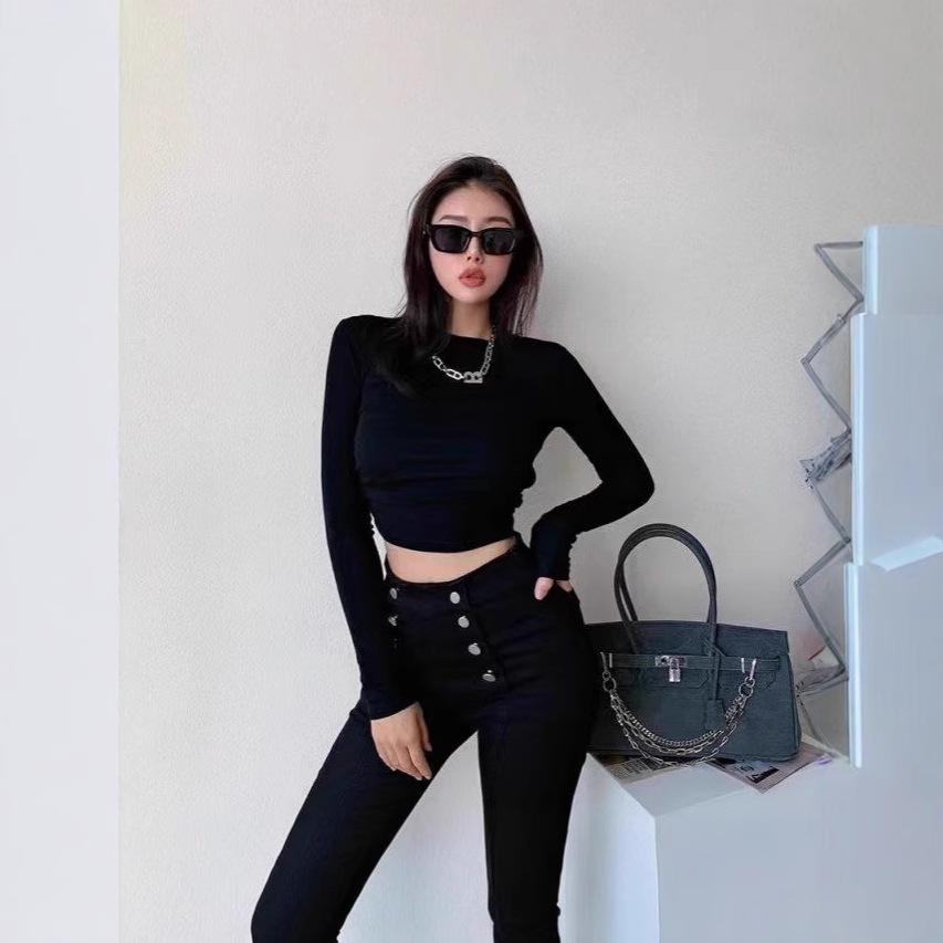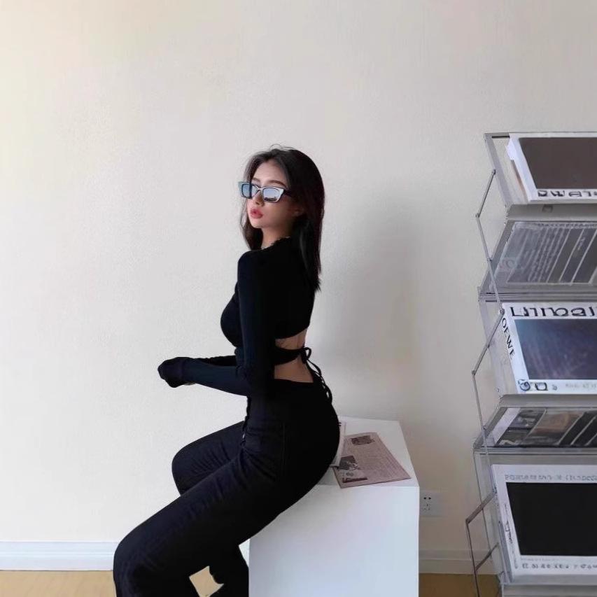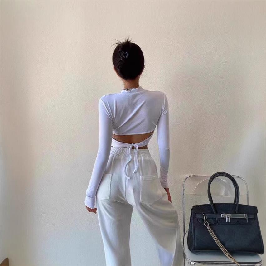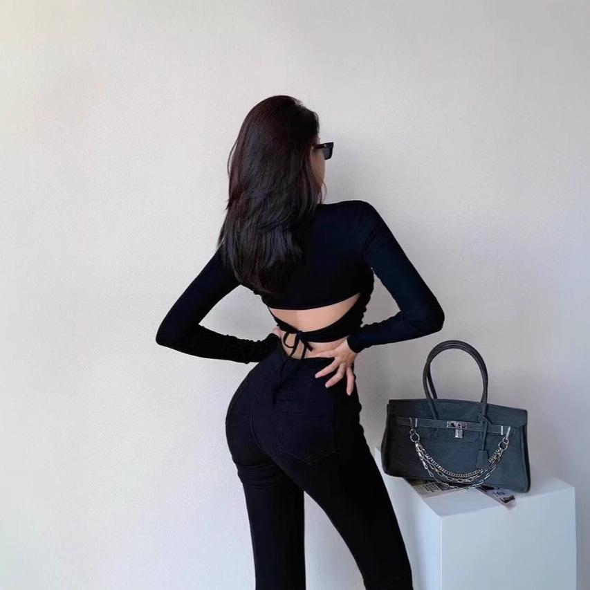 Camiseta de tirantes sin espalda estilo chica sexy para mujer otoño 2025 nuevo estilo diseño de personalidad sentido manga larga camisa de base interior