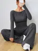 En Existencia Transfronterizo para Mujer Europeo y Americano Color Sólido Manga Larga Casual Pantalones de Pierna Ancha Moda Conjunto de Dos Piezas Ropa de Comercio Exterior