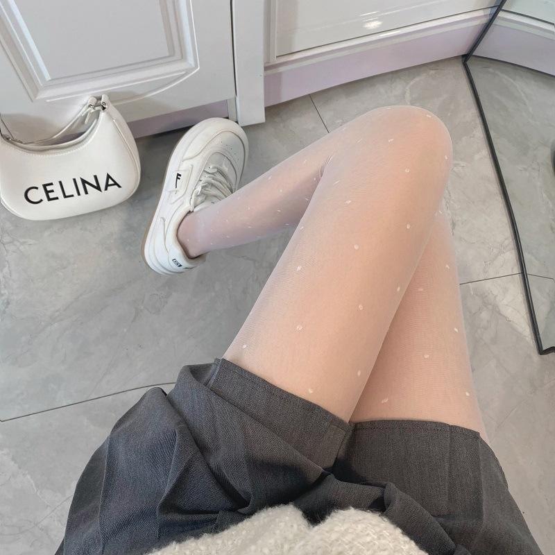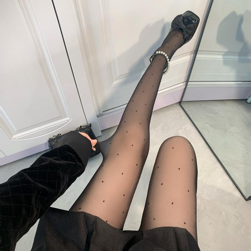 Medias de seda con lunares, populares en línea, con lazo de amor, lunares, ultrafinas, sexys, de seda negra, blancas y ultrafinas.