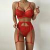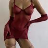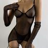 Nuevo sexy de malla transparente con tirantes finos europeos y americanos, lencería sexy con aro de acero, conjunto de tres piezas Julong, entrega de una pieza 2360
