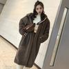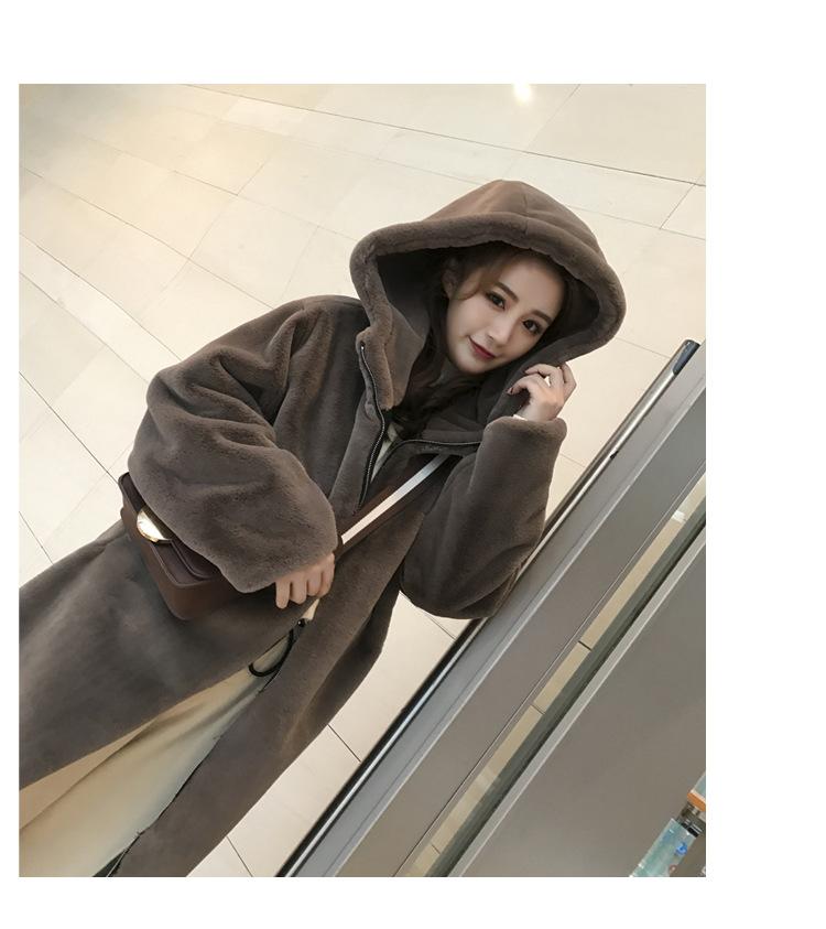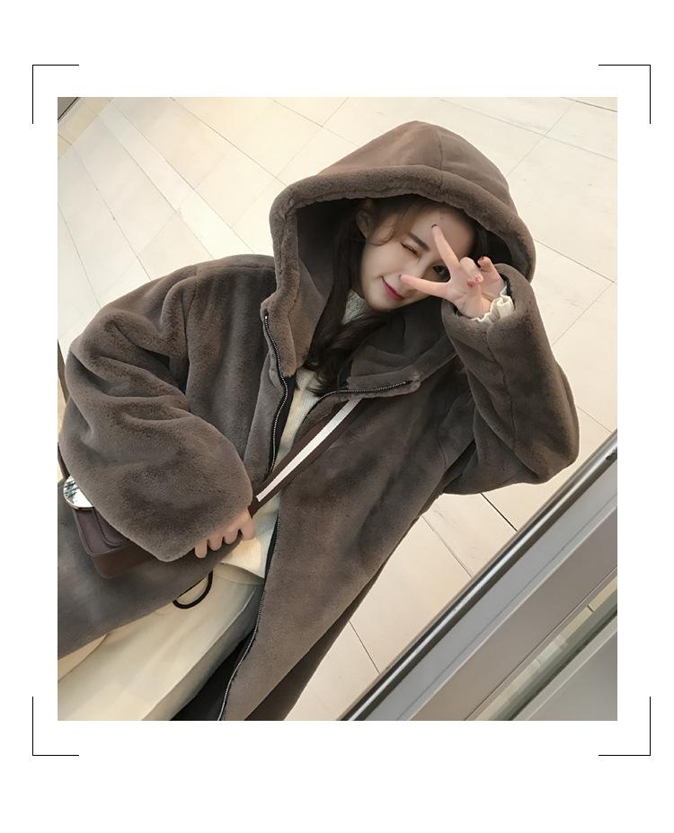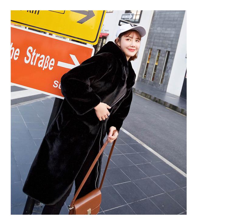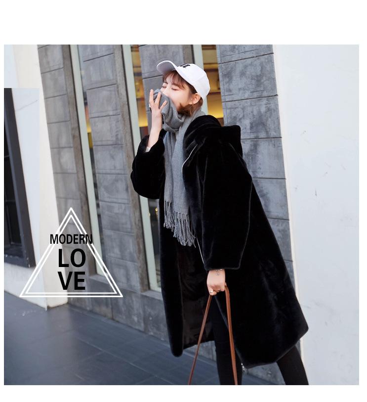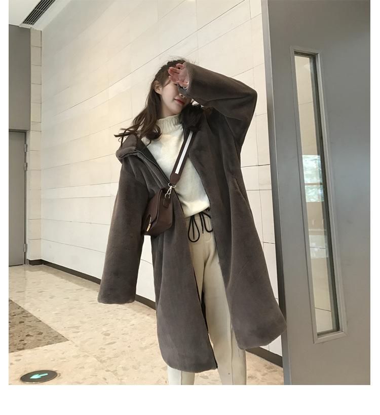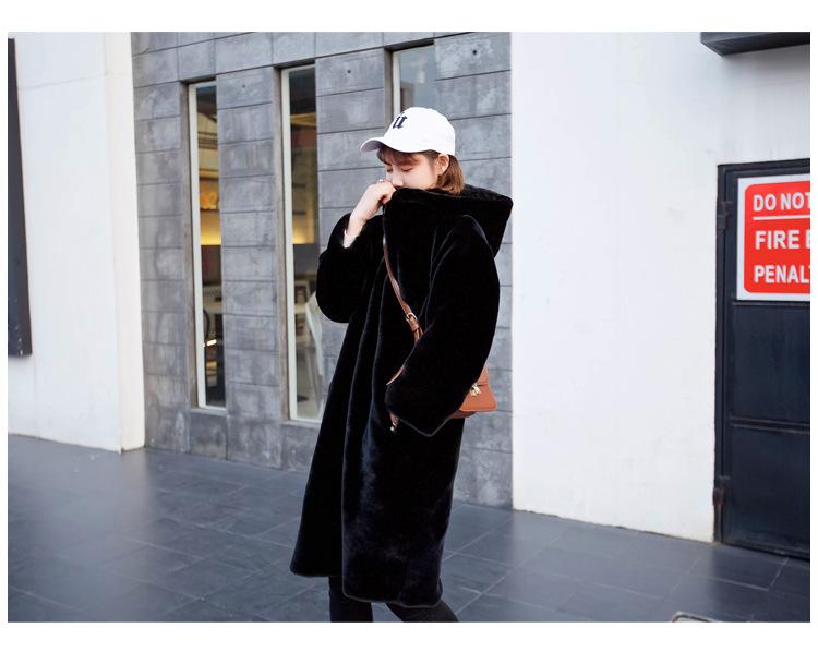 Abrigo largo de piel de conejo de imitación para mujer, abrigo de invierno de Amazon, talla grande, cálido, con capucha y felpa.