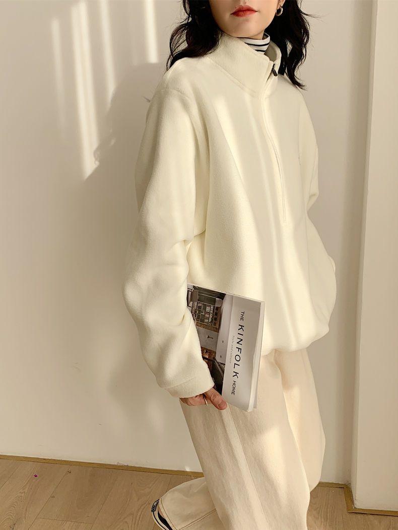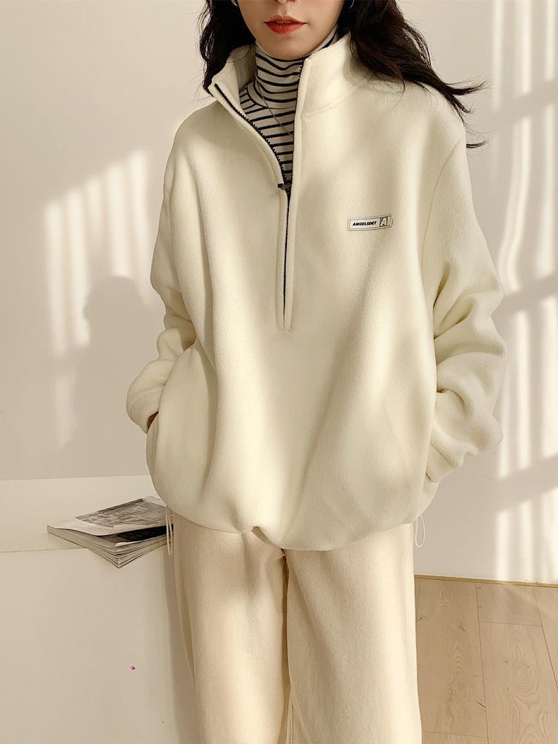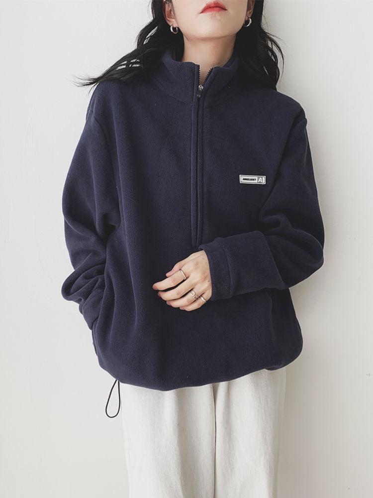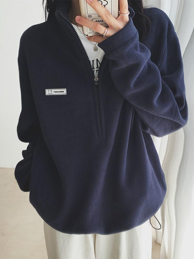 Chaqueta polar para mujer, otoño e invierno 2023, estilo americano holgado, con forro polar, cuello vertical grueso, sudadera cálida de polar.