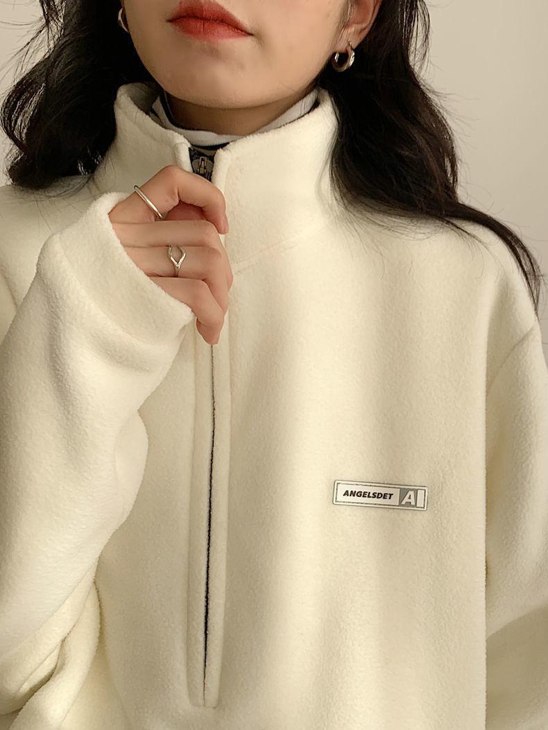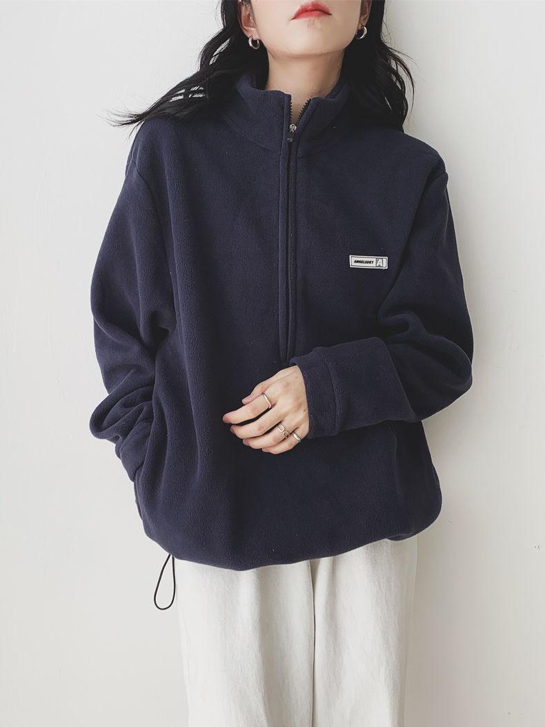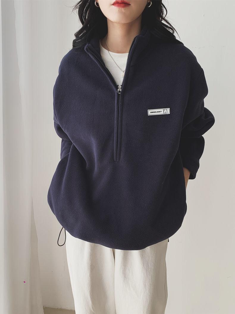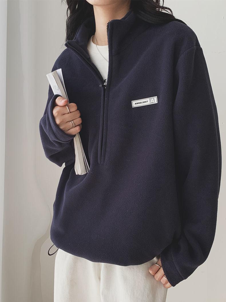 Chaqueta polar para mujer, otoño e invierno 2023, estilo americano holgado, con forro polar, cuello vertical grueso, sudadera cálida de polar.