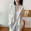 Chaqueta de traje de primavera 2025 para mujer, elegante, informal, estilo coreano, con cinturón y doble botonadura