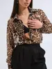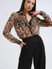 2025 Primavera y Verano Nuevo Europeo y Americano Amazon Transfronterizo Elegante Estampado de Leopardo Manga Larga Solapa Elegante Camisa de Oficina Ropa de Mujer