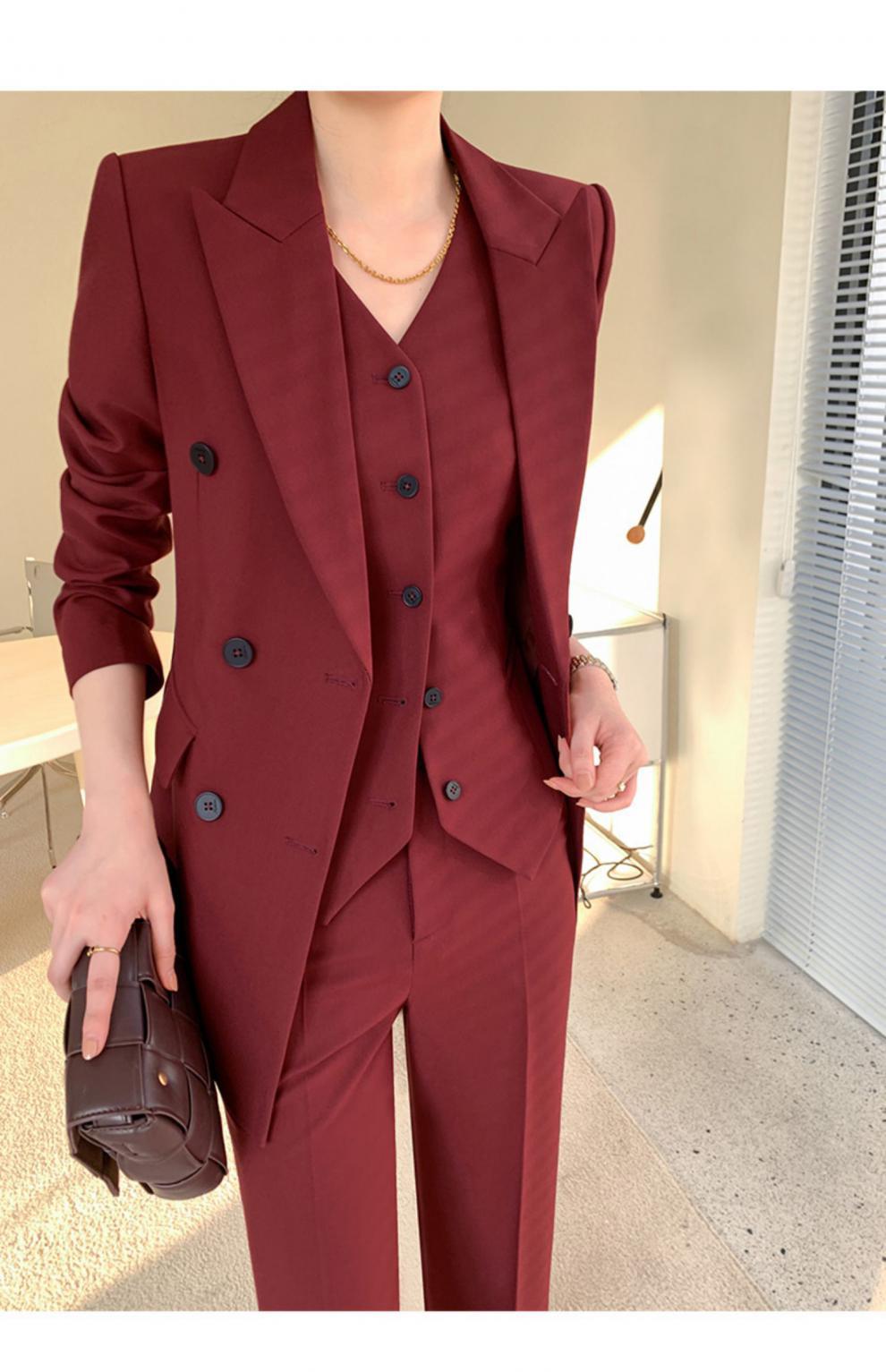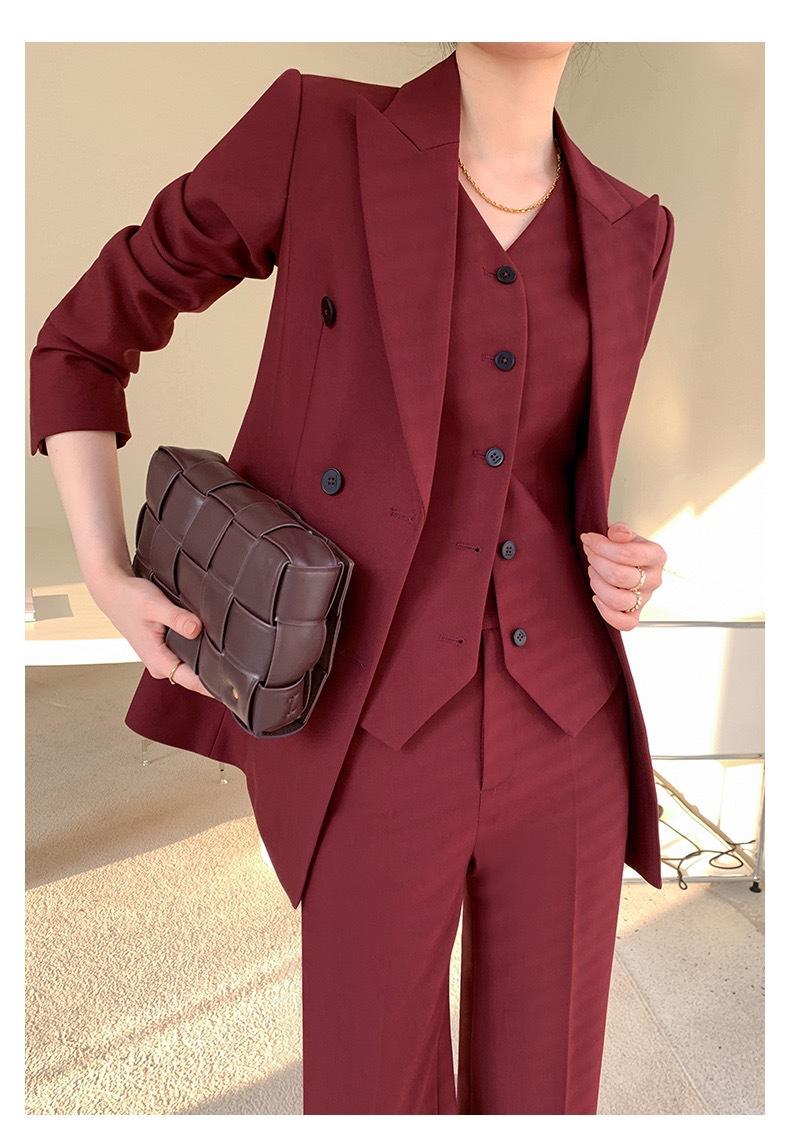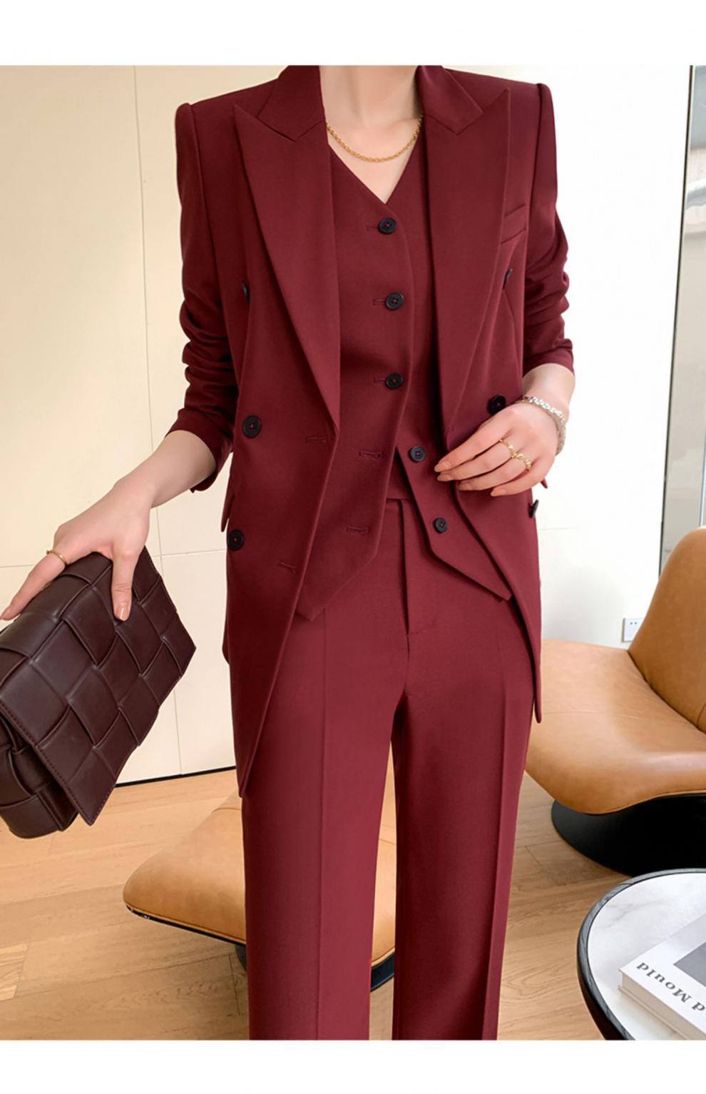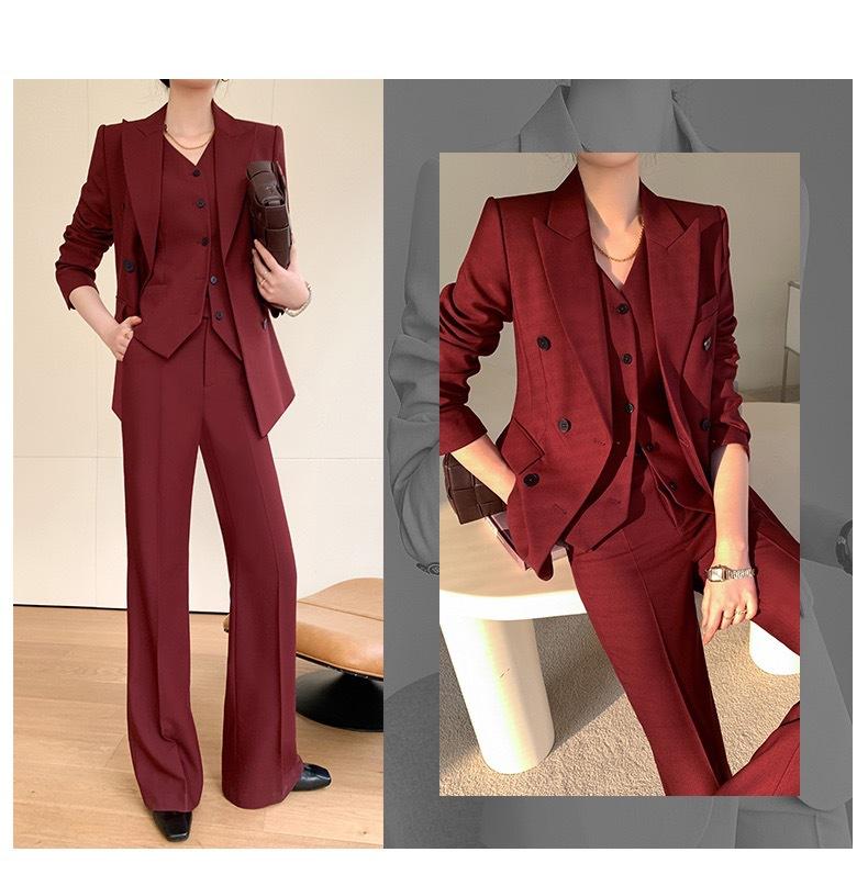 Traje de Estilo Hermana Real de Alta Gama 202 Primavera Nuevo Nuevo Traje Chaqueta + Chaleco Traje + Pantalones Profesionales Conjunto de Tres Piezas