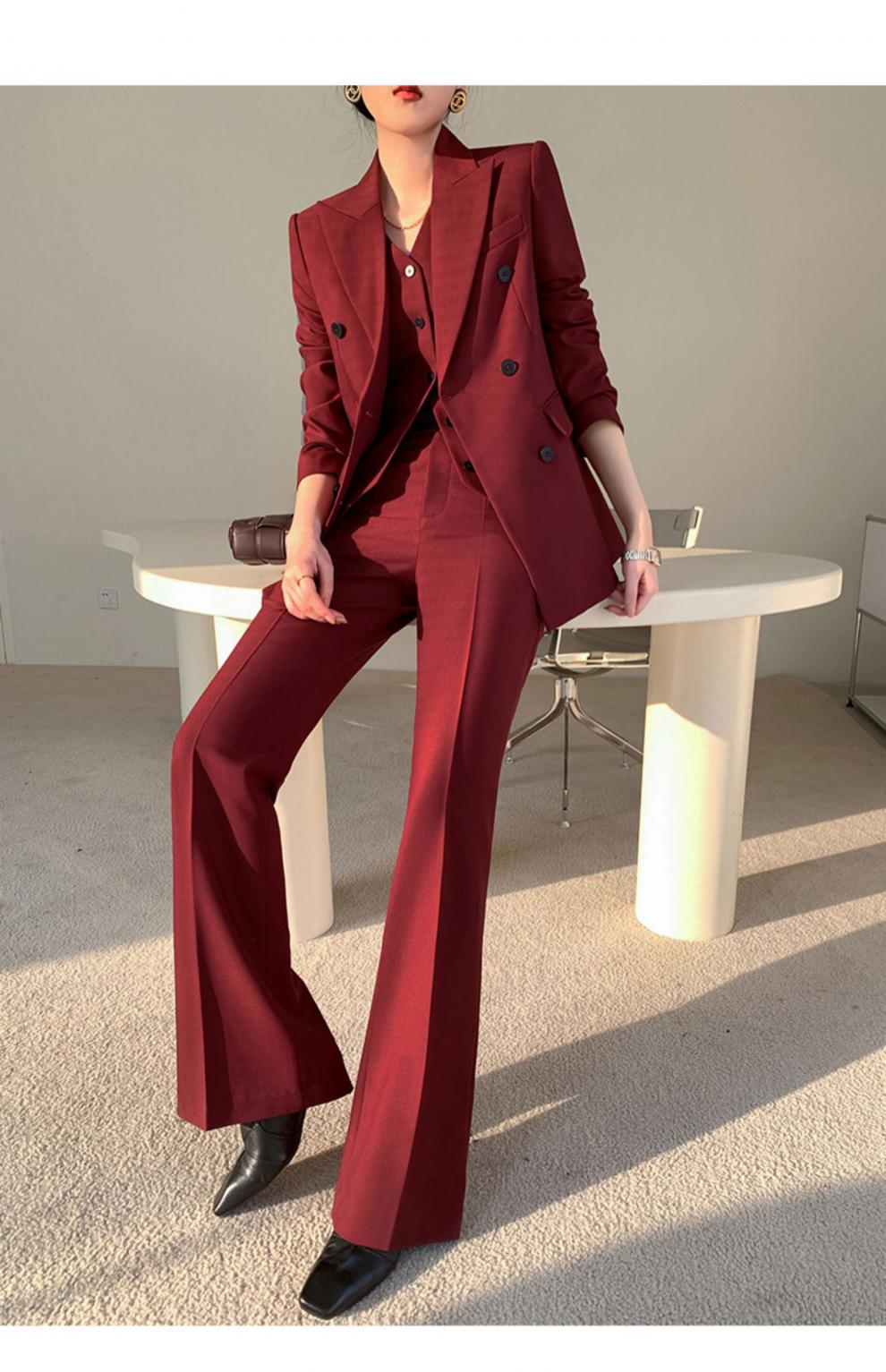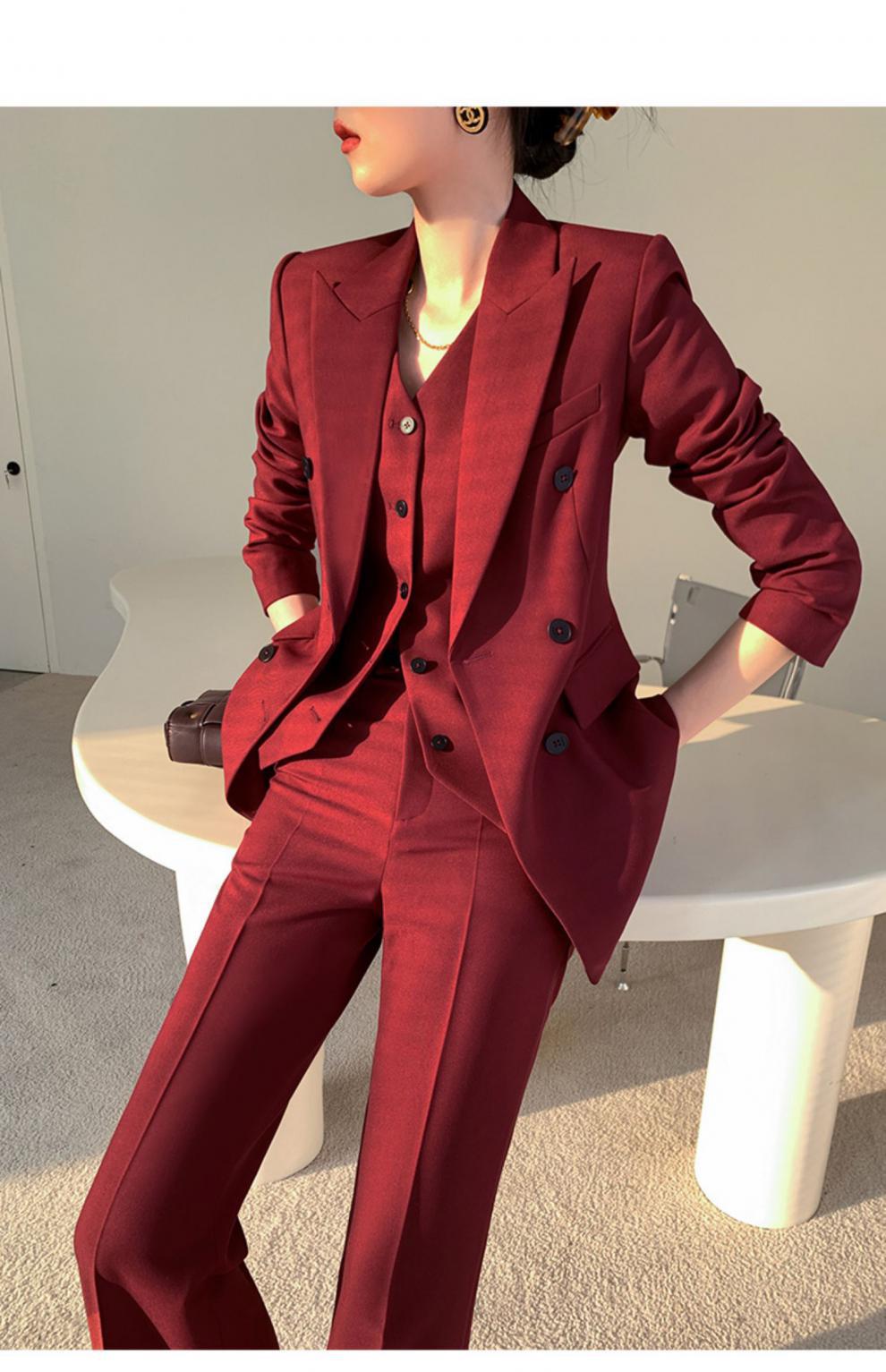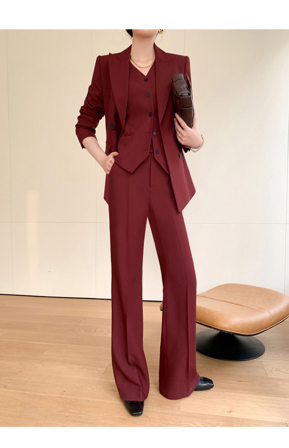 Traje de Estilo Hermana Real de Alta Gama 202 Primavera Nuevo Nuevo Traje Chaqueta + Chaleco Traje + Pantalones Profesionales Conjunto de Tres Piezas