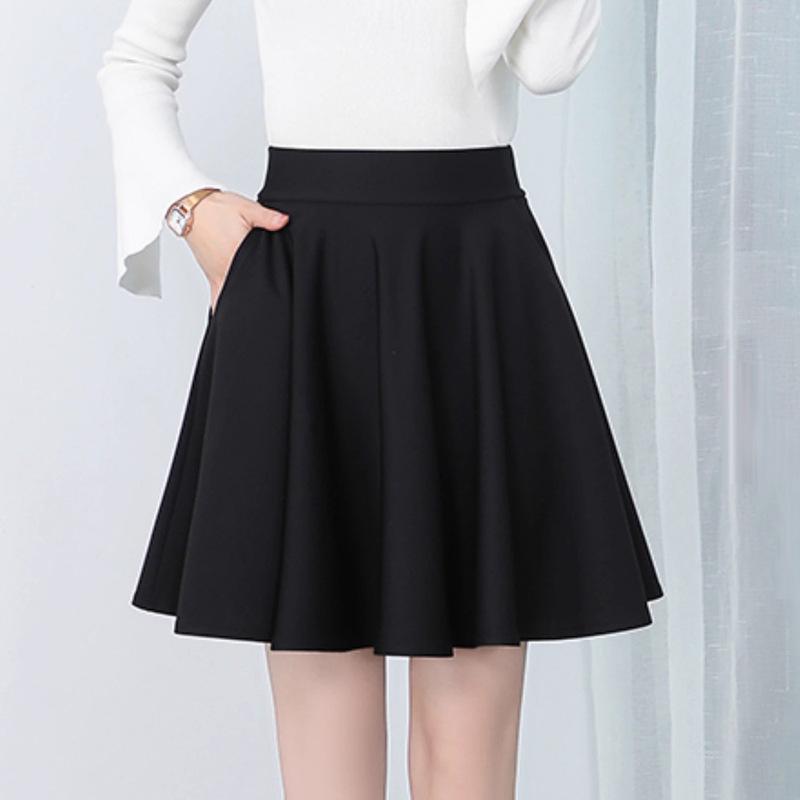 Falda de mujer, nueva llegada de otoño, cintura alta, línea A, falda abullonada, primavera 2024, falda plisada, falda paraguas negra, falda grande con vuelo