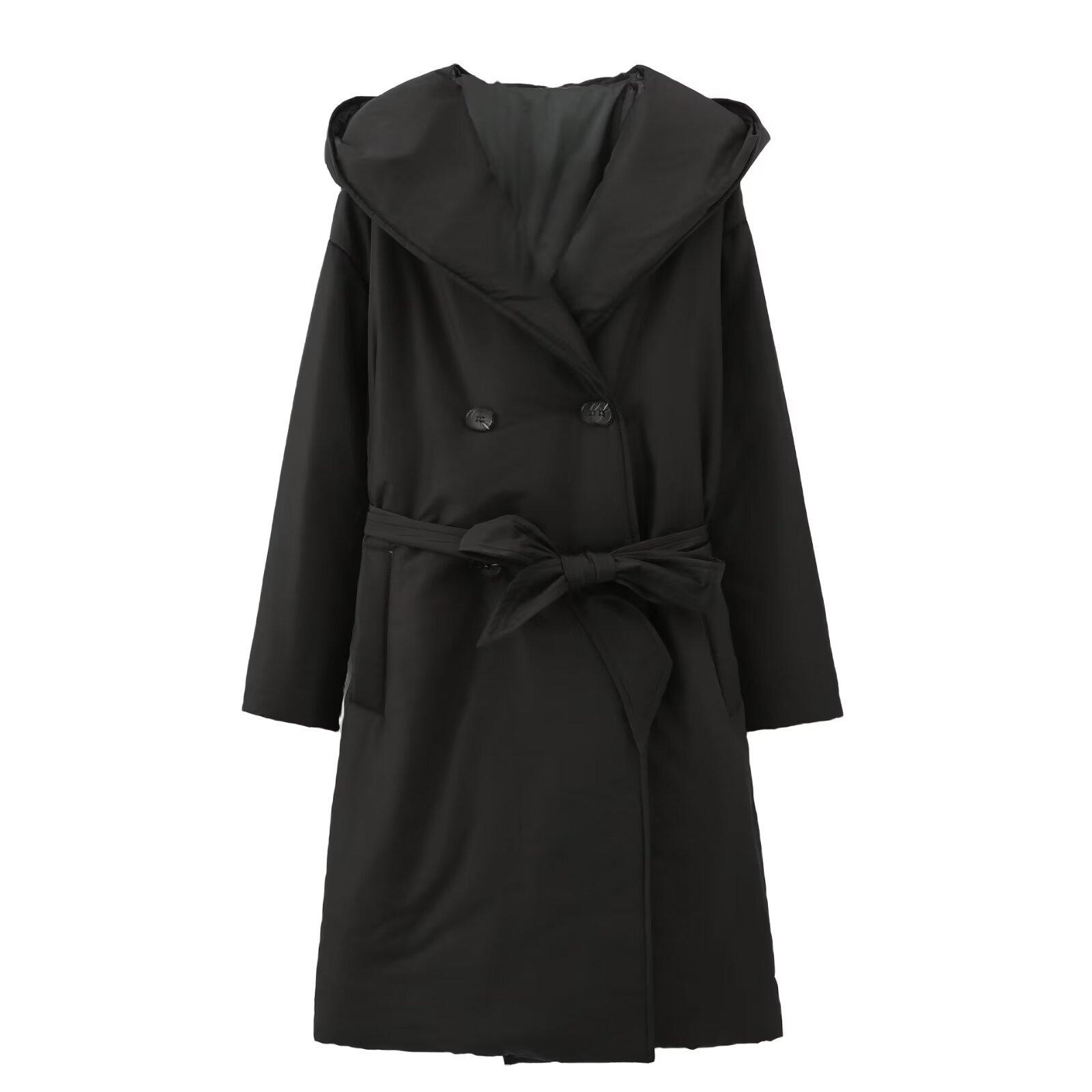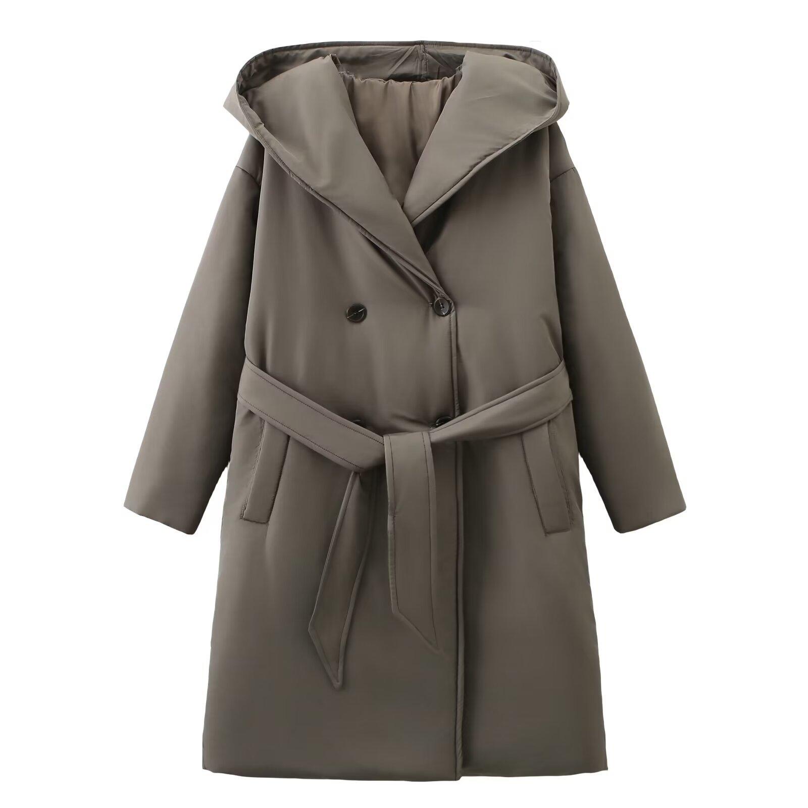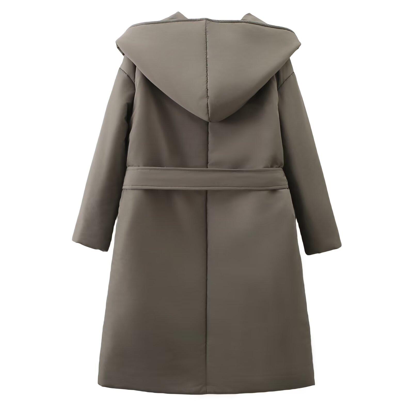 Zatrax-2024 otoño e invierno nueva ropa de mujer con cinturón suelto estilo coreano chaqueta larga con capucha acolchada de algodón abrigo