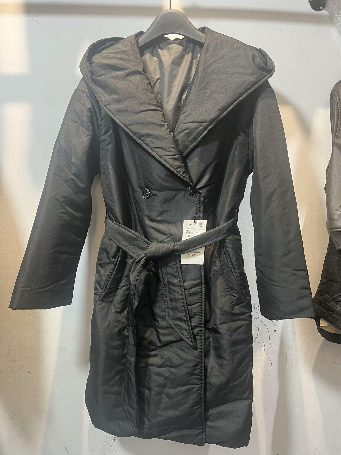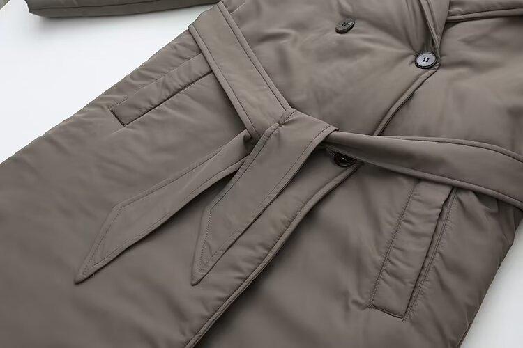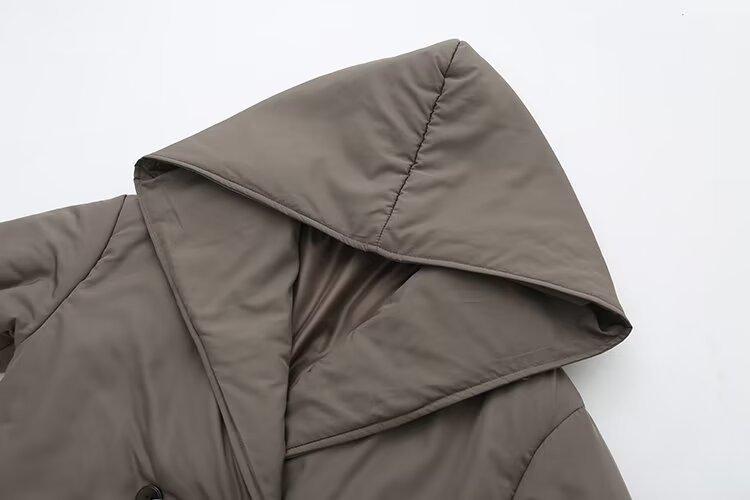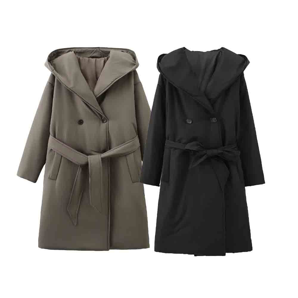 Zatrax-2024 otoño e invierno nueva ropa de mujer con cinturón suelto estilo coreano chaqueta larga con capucha acolchada de algodón abrigo
