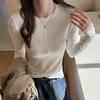 Camisa Blanca de Manga Larga para Mujer Camisa Interior de Fondo 2025 Nuevo Estilo Caliente Moda Primavera y Otoño Top de Cuello Redondo