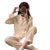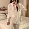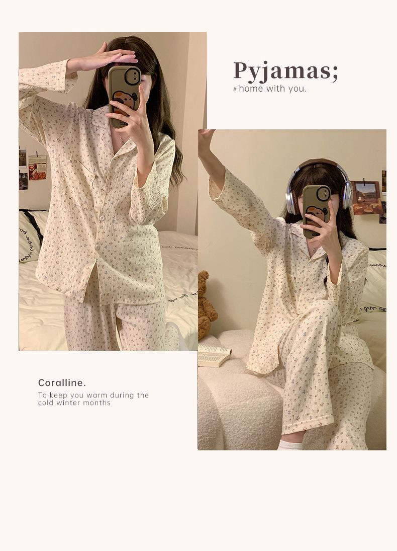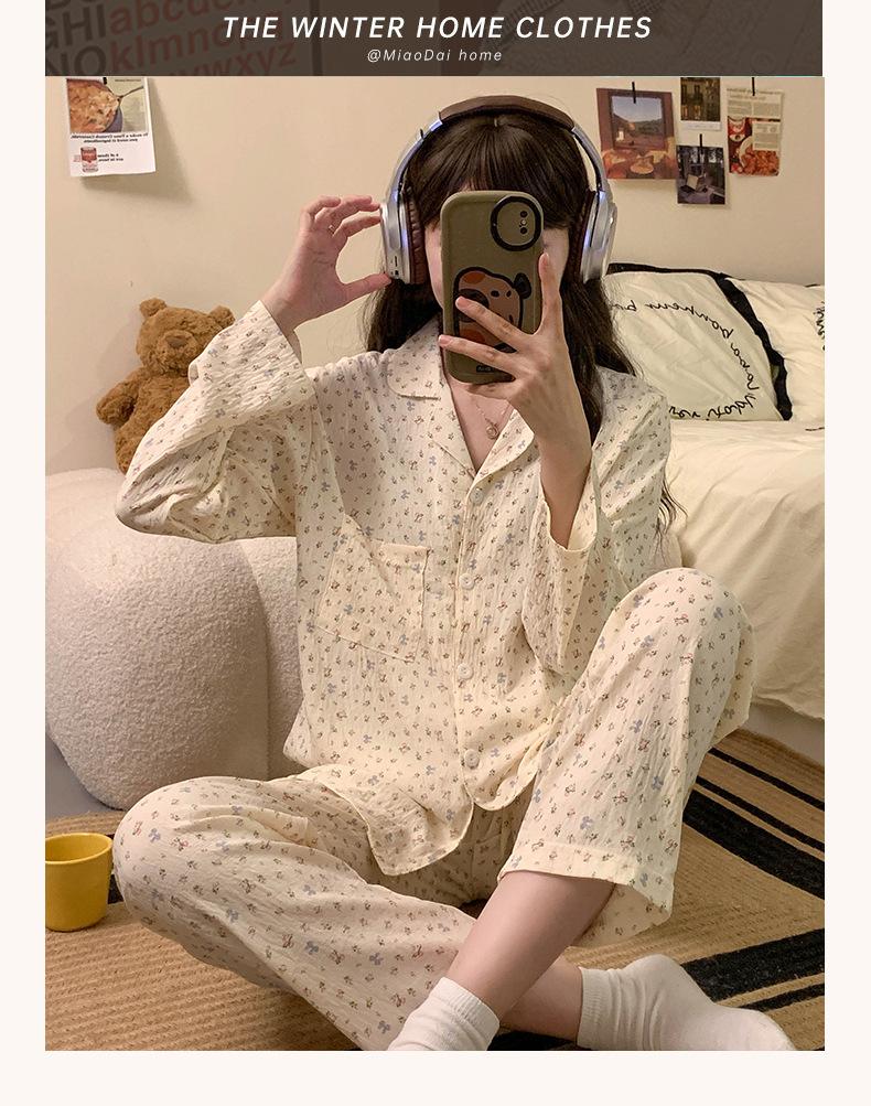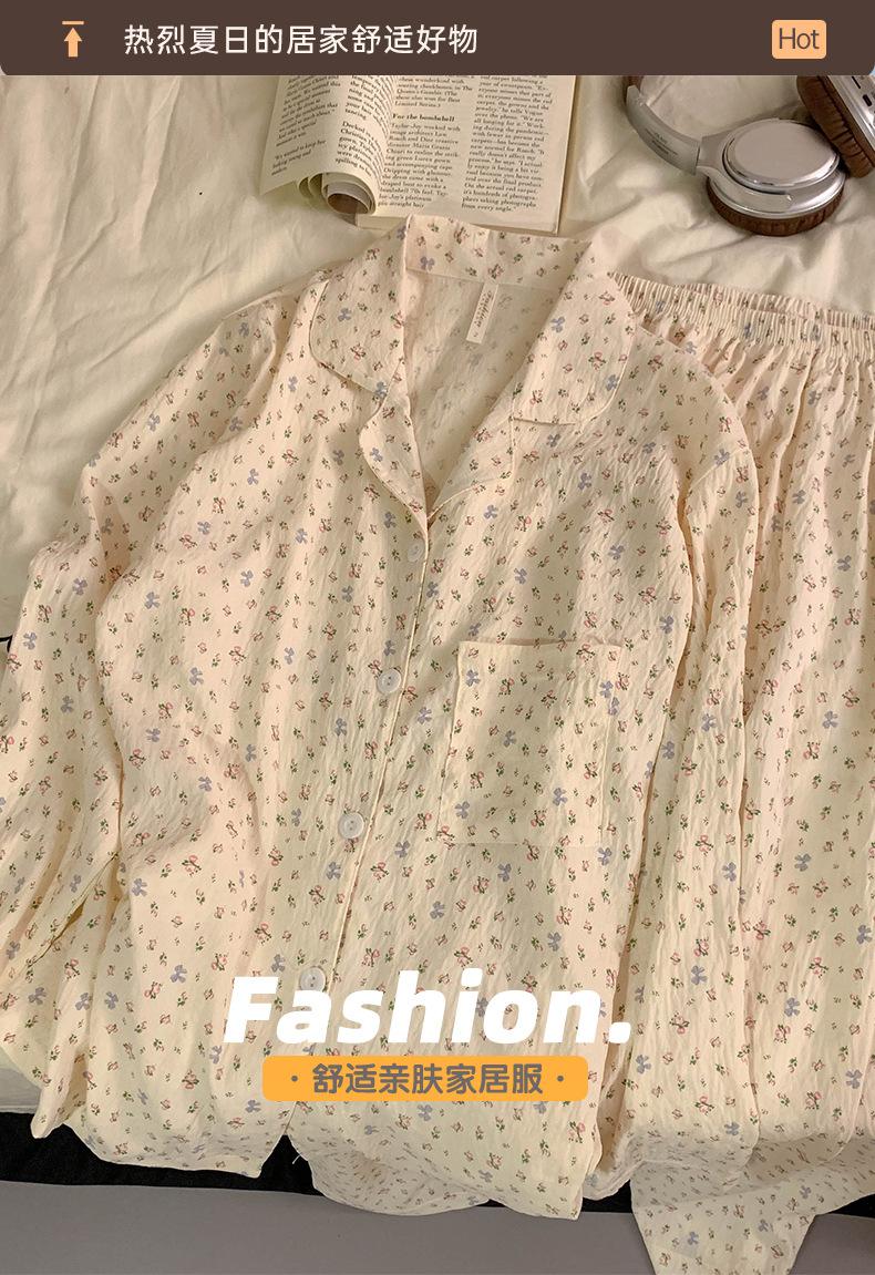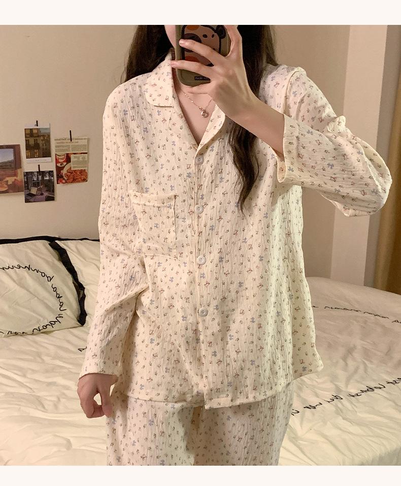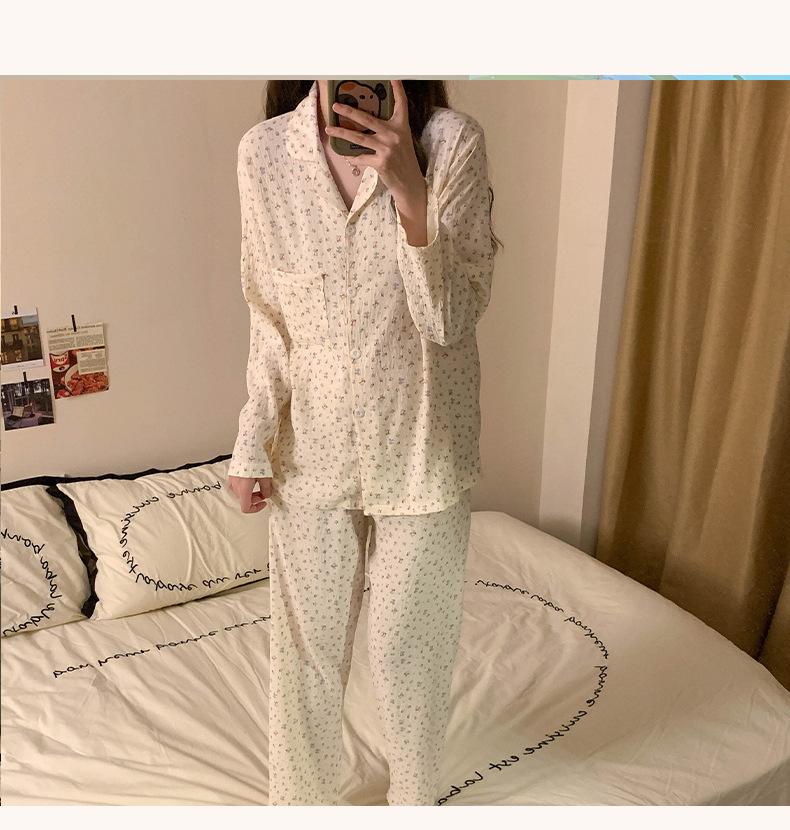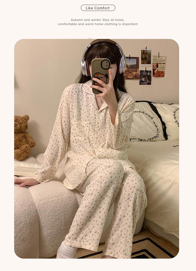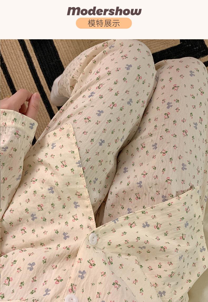 Pijamas florales de estilo dulce para mujer, primavera y otoño, bonitos pantalones holgados de manga larga, ropa para el hogar, novedad de 2024