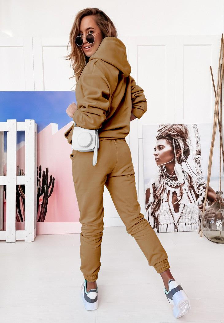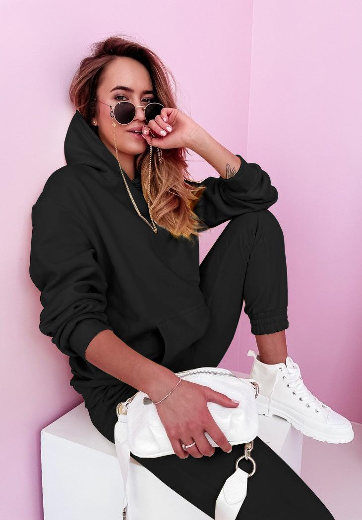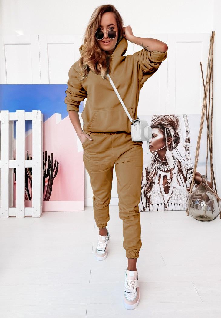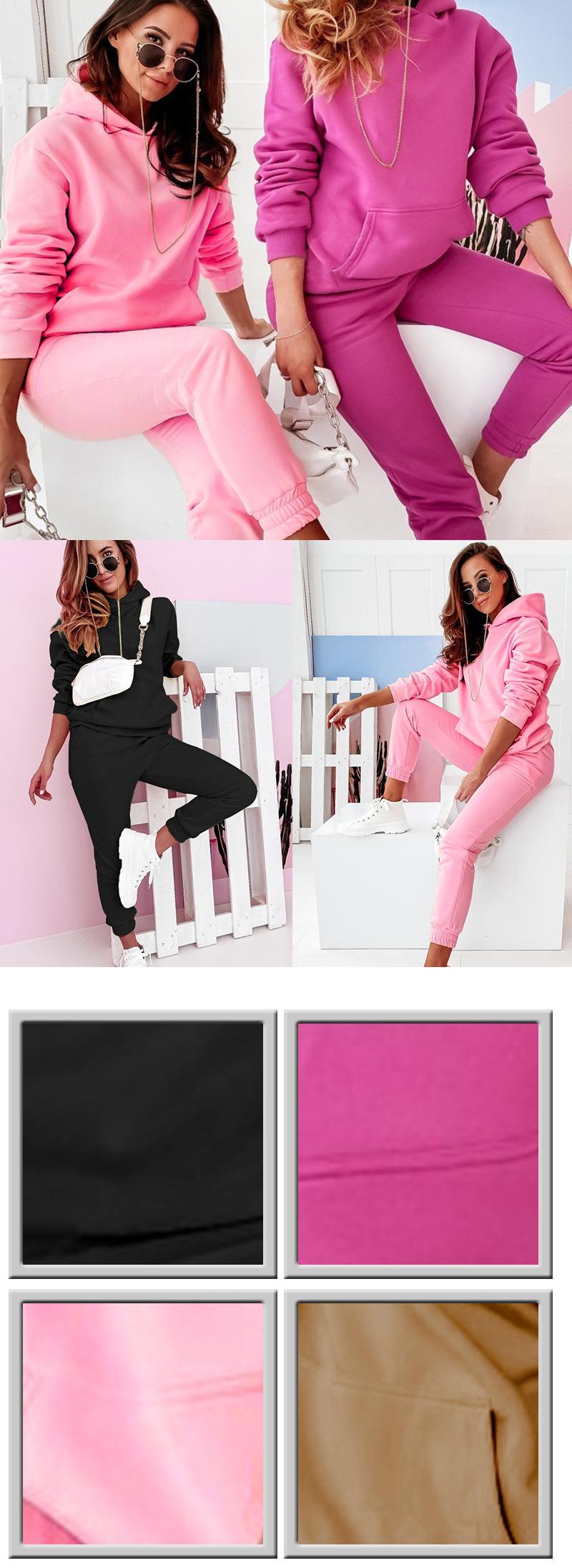 Nuevo Otoño e Invierno Transfronterizo Amazon Europeo y Americano Color Sólido Sudadera Deportiva Casual con Capucha Traje de Manga Larga Pantalones Ropa de Mujer
