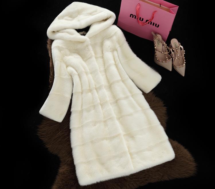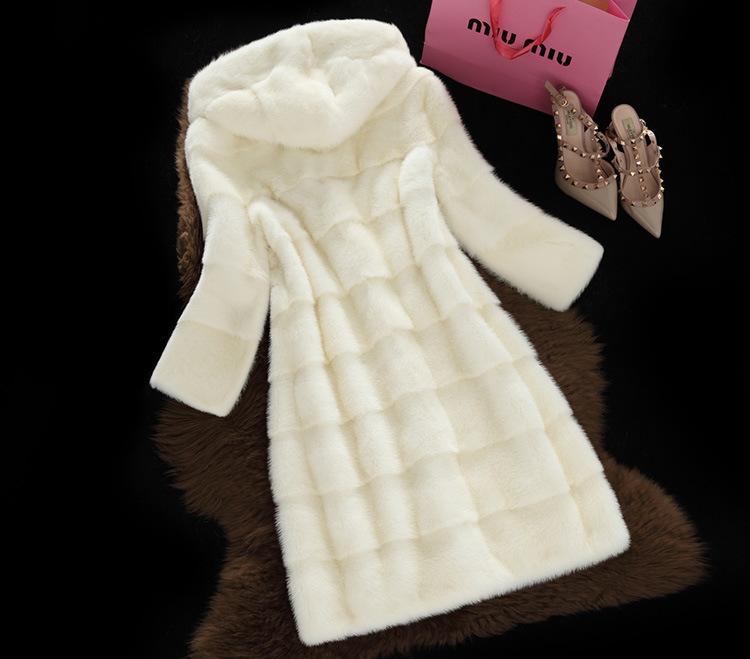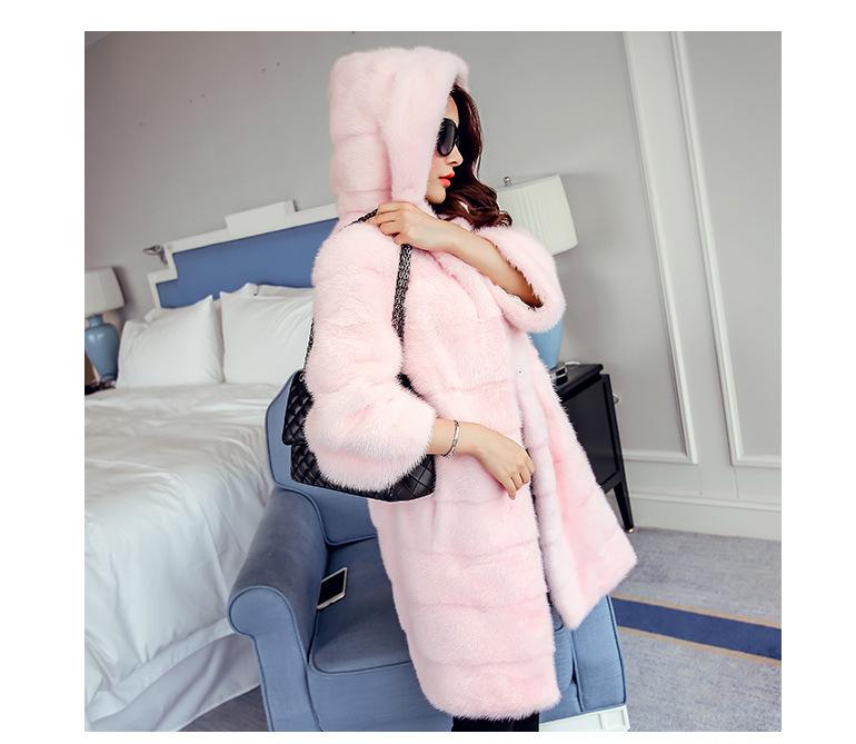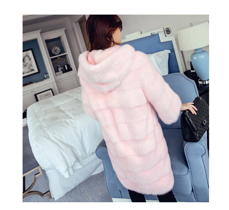 Abrigo de Visón Nuevo 2024 para Mujer con Capucha Largo de Piel Sintética Abrigo Suelto y Cálido