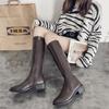 Botas altas de caballero de estilo coreano, de otoño e invierno, con punta redonda, adelgazantes, con cremallera lateral y tacón grueso, de cuero para mujer