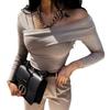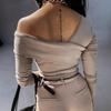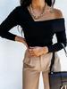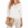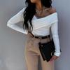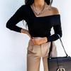 Comercio Exterior Transfronterizo Ropa de Mujer Europea y Americana Amazon AliExpress 2024 Otoño/Invierno Color Sólido Sexy Cuello en V Hombro Manga Larga Camiseta