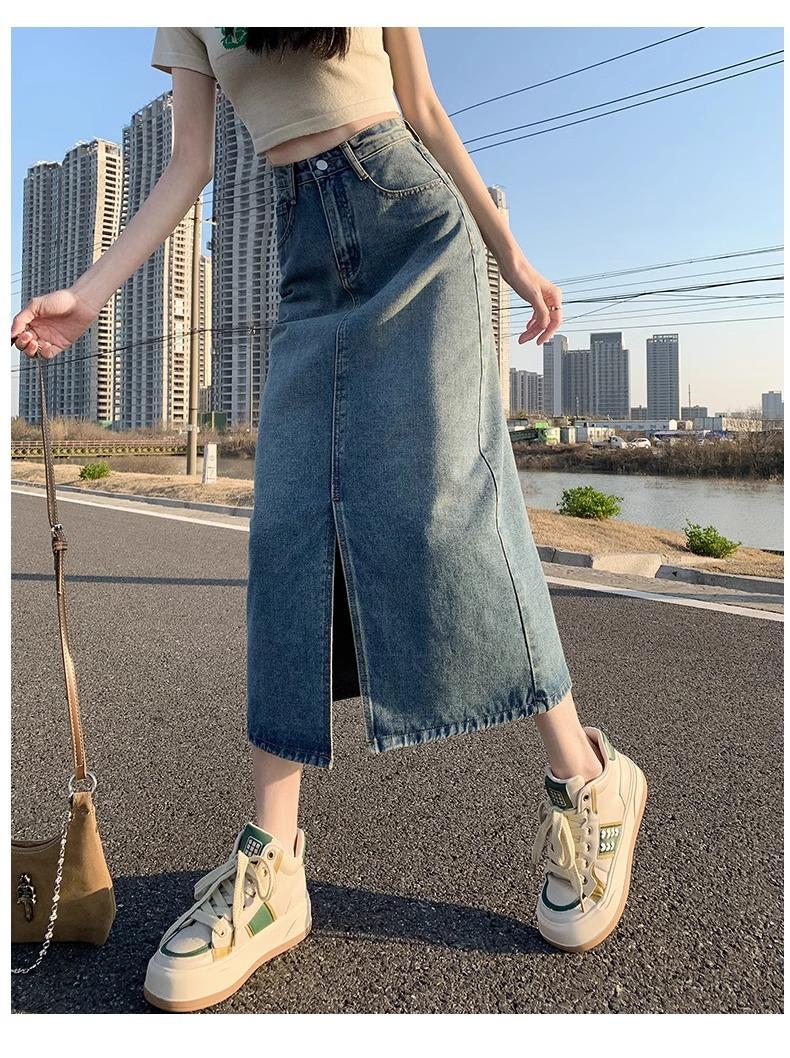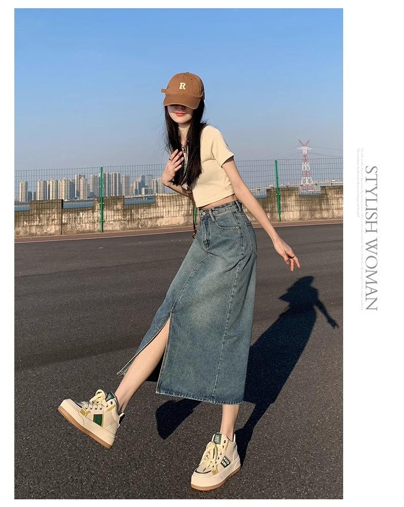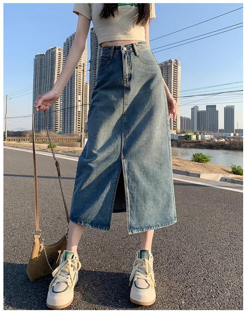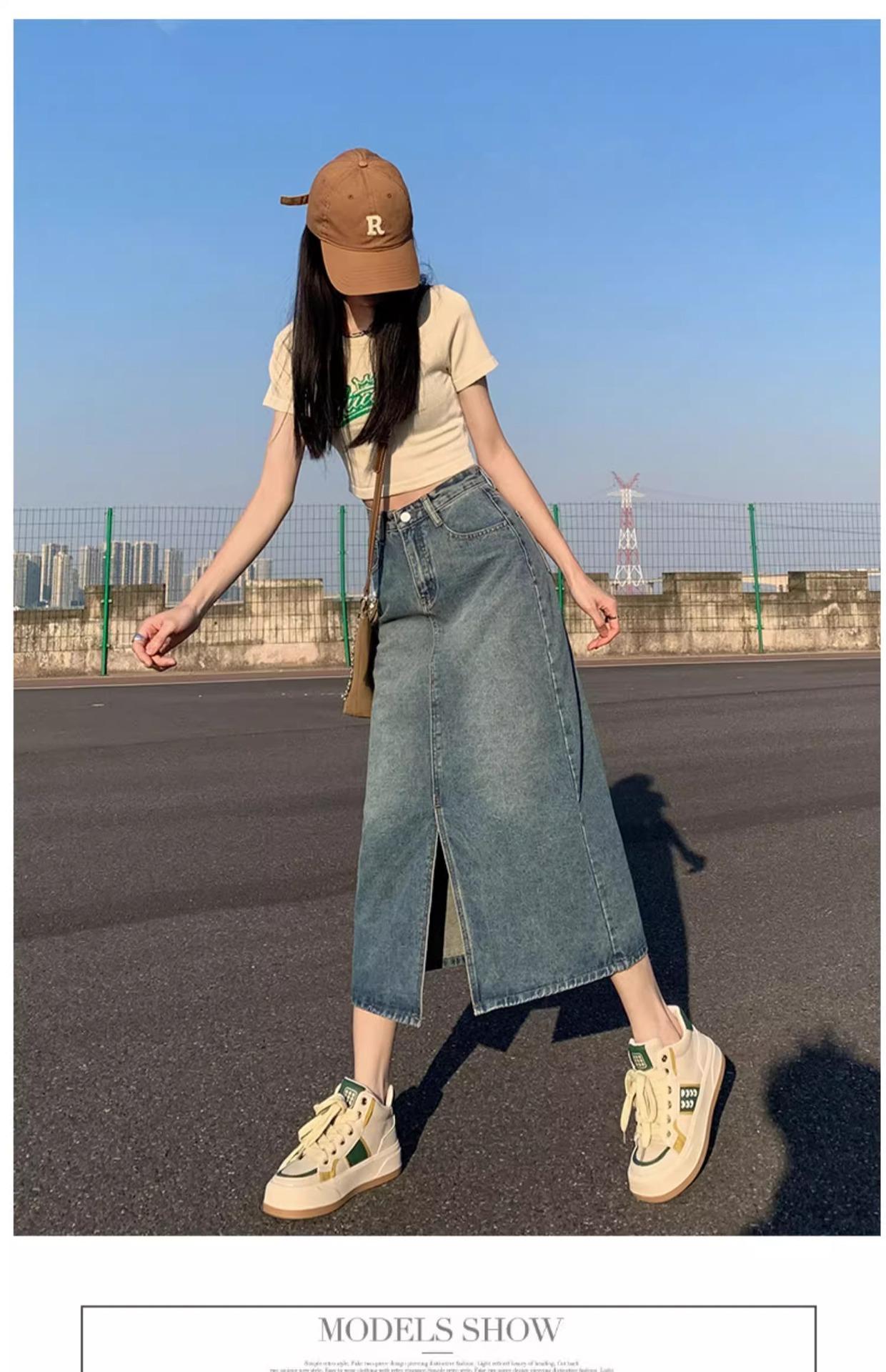 Falda vaquera retro, holgada, de corte A, de longitud media, para mujer pequeña, combinable con todo, nueva.