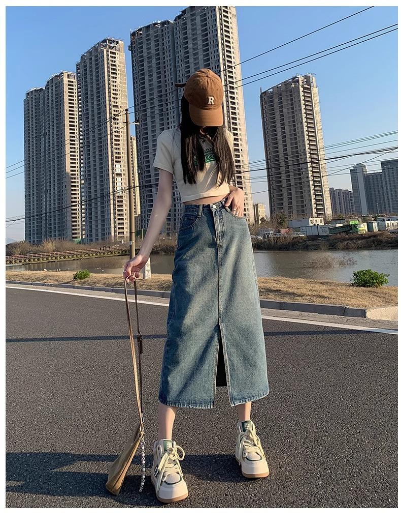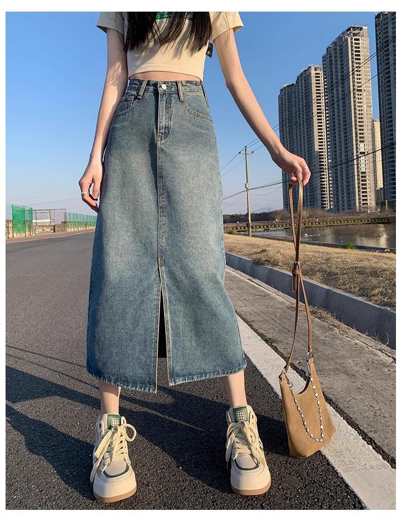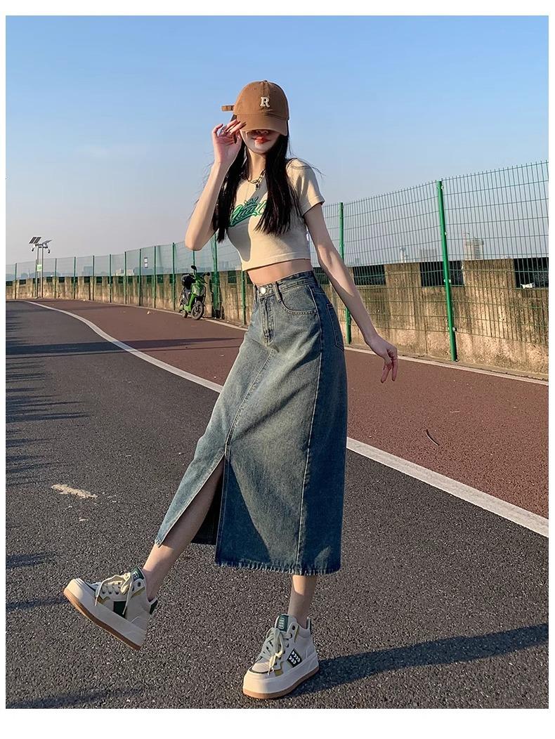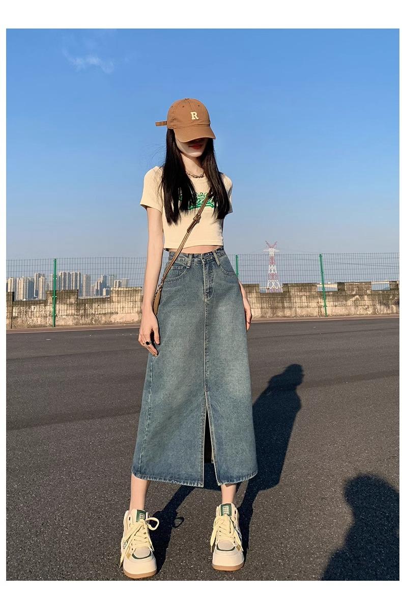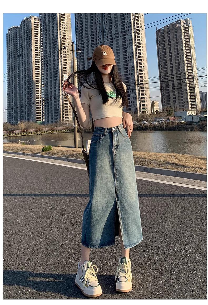 Falda vaquera retro, holgada, de corte A, de longitud media, para mujer pequeña, combinable con todo, nueva.