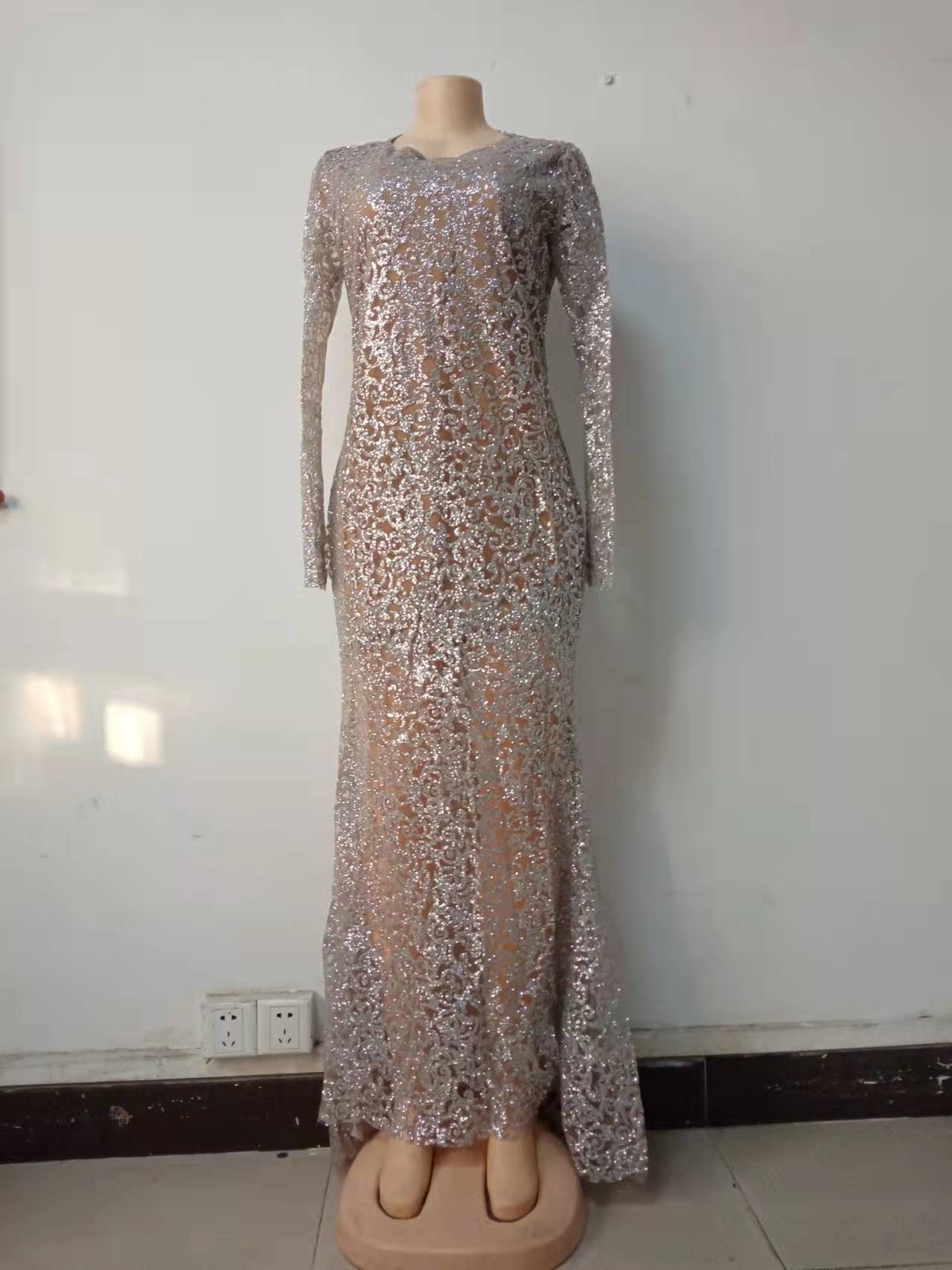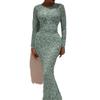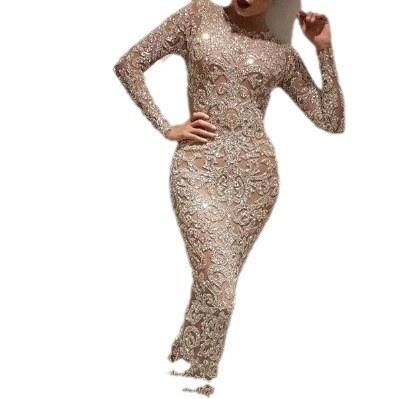 2025 Primavera Transfronteriza Europea y Americana Nuevo Amazon Ropa de Mujer Bronceado Manga Larga Ajustado Sexy Falda Larga Vestido de Noche para Mujer