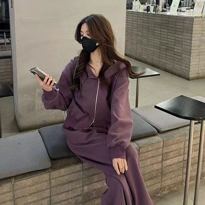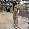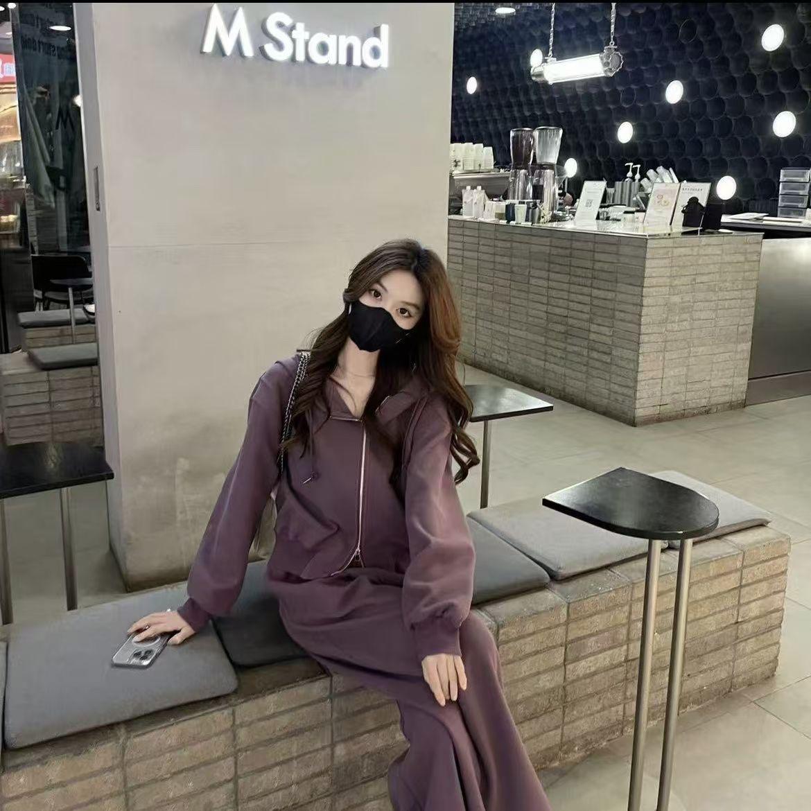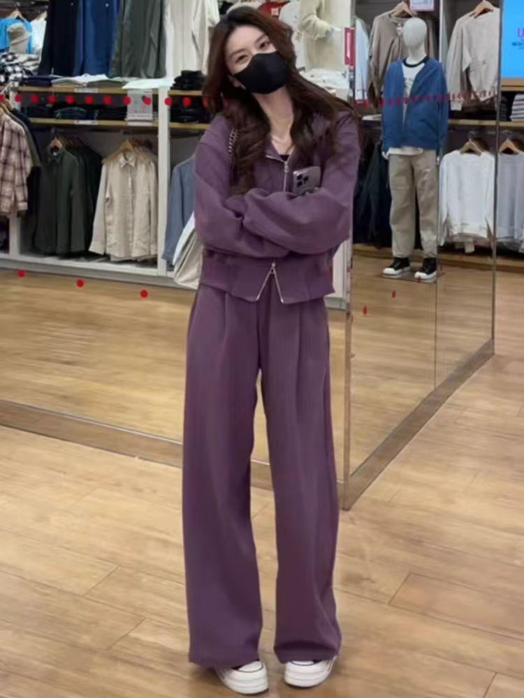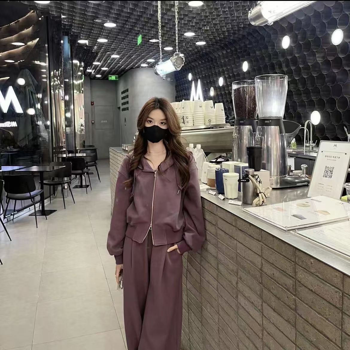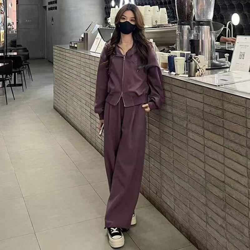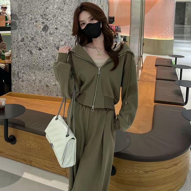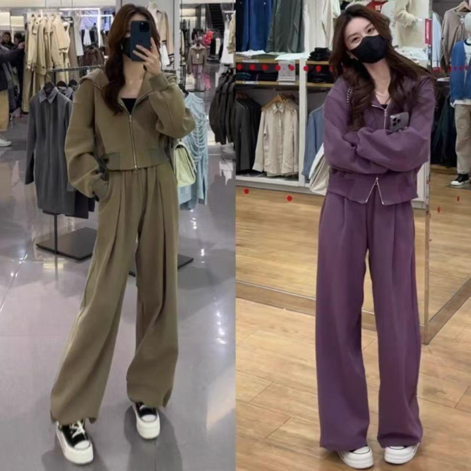 2024 Primavera y Otoño Nuevo Traje Deportivo Casual con Capucha de Celebridad de Internet para Mujer, Pantalones Slim de Cintura Alta y Pierna Ancha, Traje de Dos Piezas