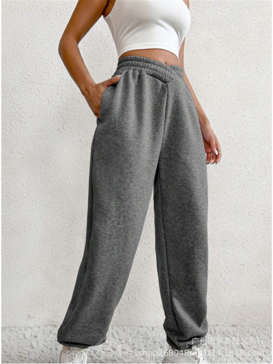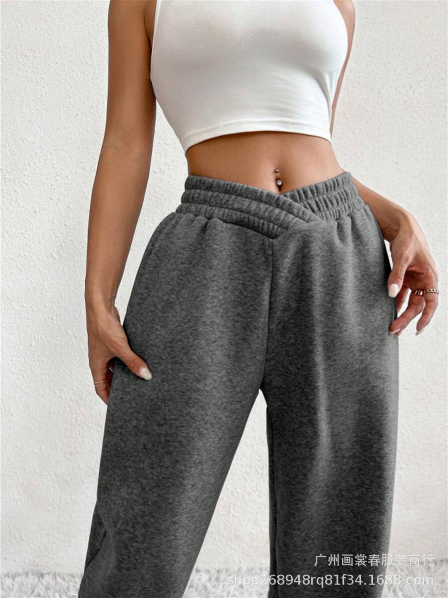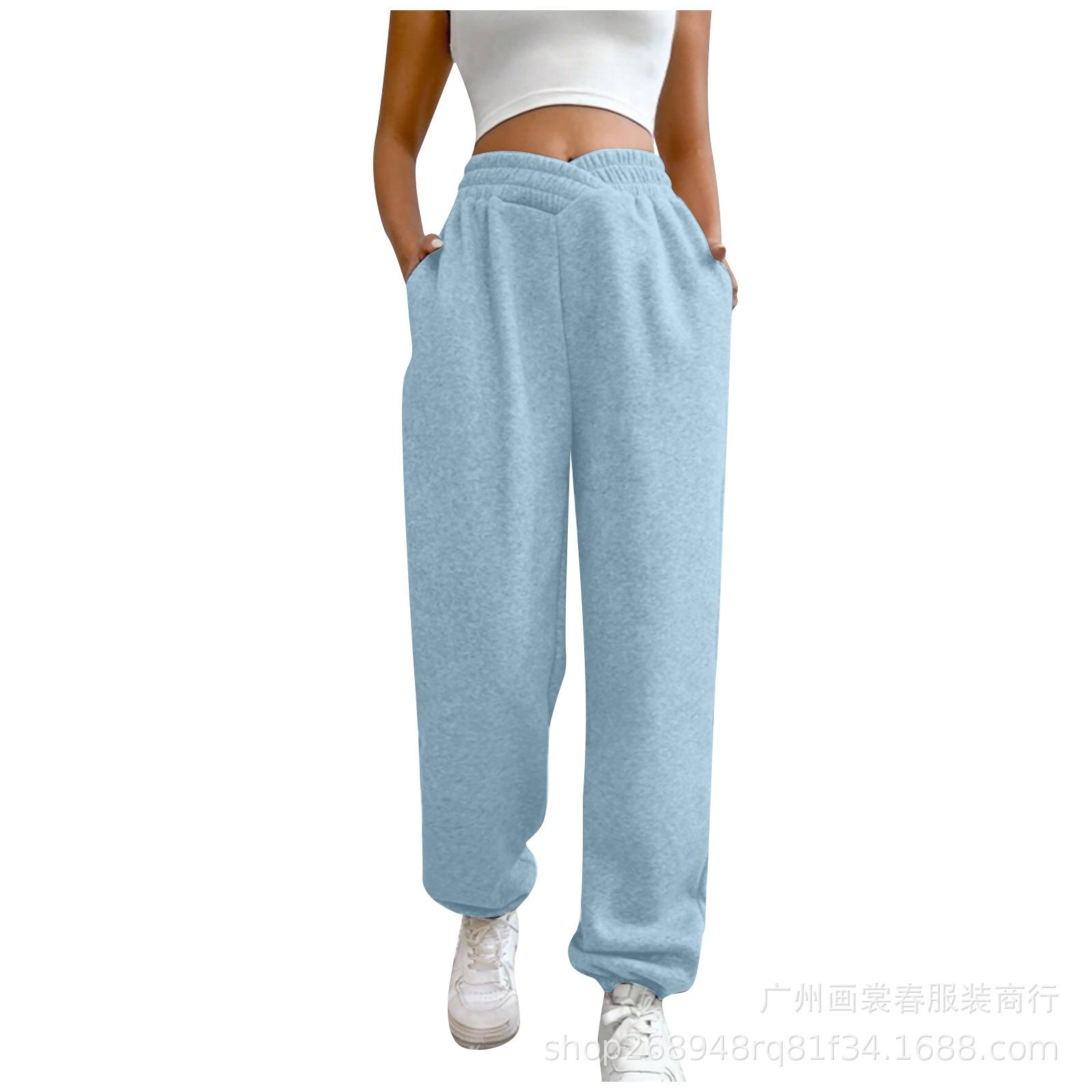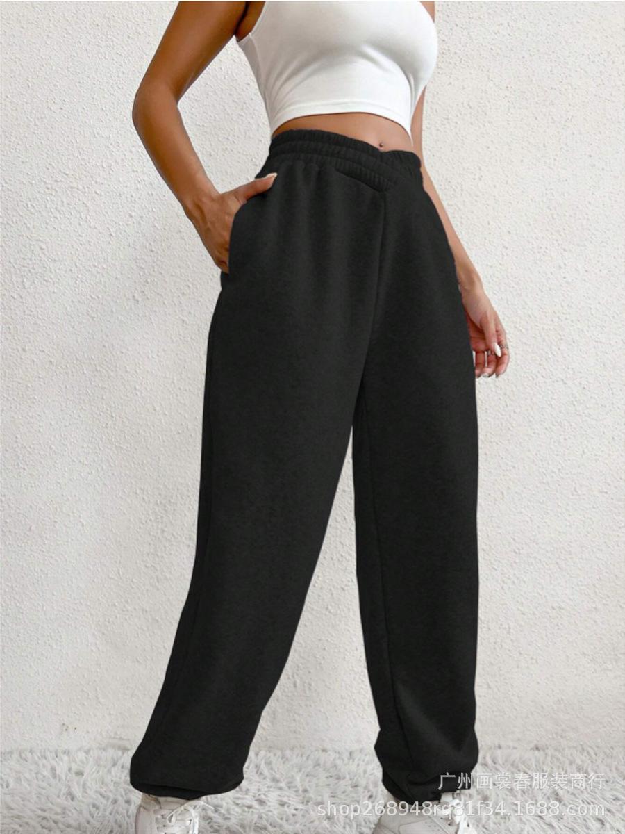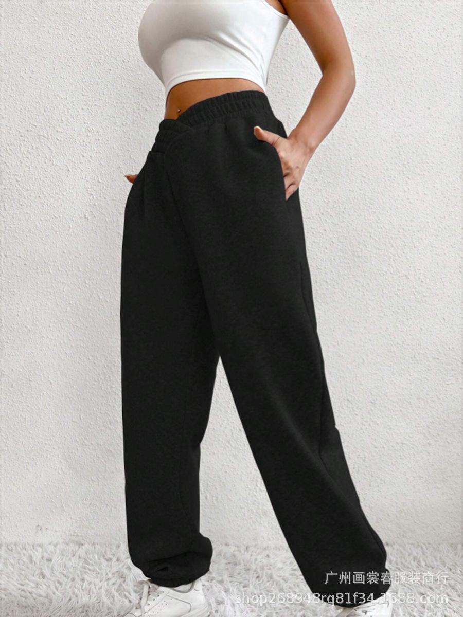 Pantalones de chándal holgados y cerrados de color liso con bolsa oblicua para mujer, de invierno, nuevos, de comercio exterior transfronterizo de Amazon, europeos y americanos