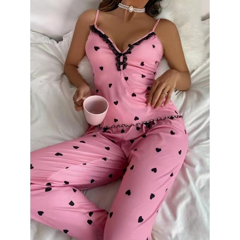 Pijama nuevo de cuello en V para mujer, de comercio exterior europeo y americano, cómodo, con botones y tirantes, para estar en casa