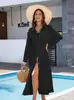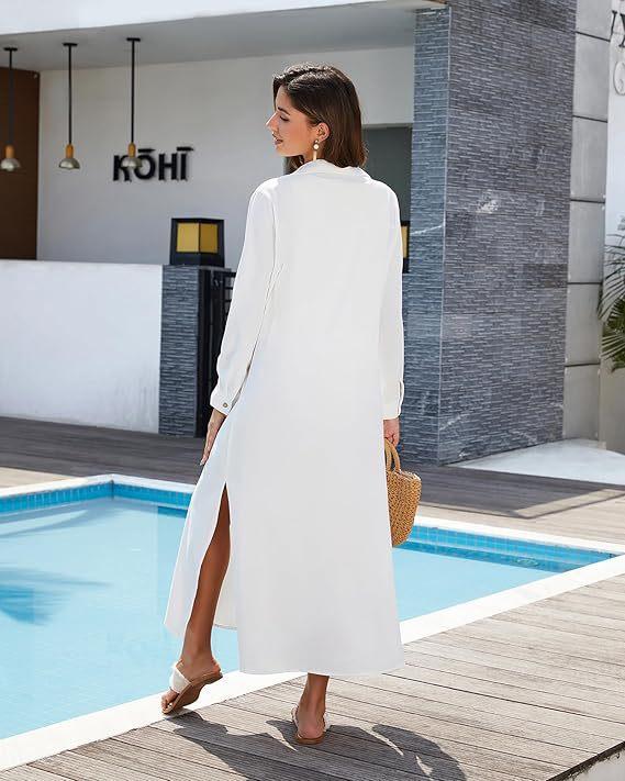 Amazon 2025 Verano Nuevo Camisa de Bolsillo de Manga Larga Cárdigan Transfronterizo Europeo y Americano Blusa Larga de Bikini para Mujer