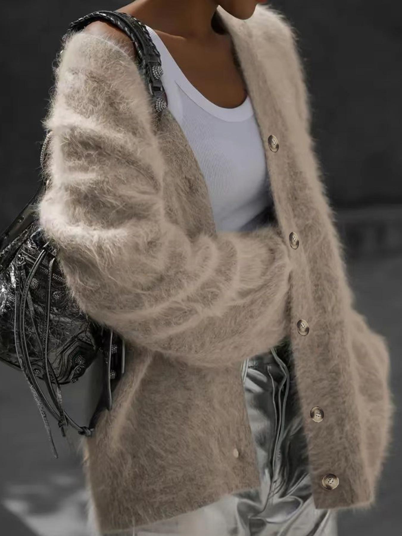 Chaqueta de punto holgada de manga larga, elegante, nueva, cómoda y de estilo europeo y americano, de talla grande, para mujer.