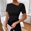 Blusa elegante plisada de cuello redondo de manga corta para mujer, primavera y verano 2024, transfronteriza, europea y americana, de Amazon
