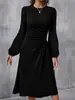 2024 Europa y América Amazon temu nuevo jersey de cuello redondo moda manga larga ajustado vestido dividido otoño e invierno ropa de mujer