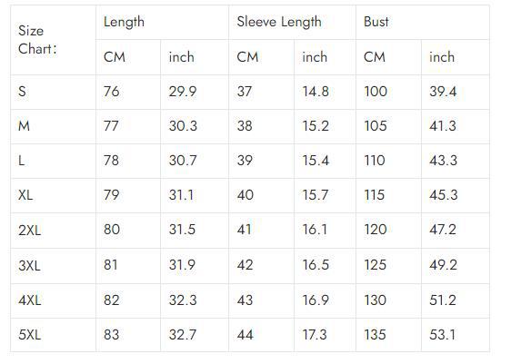 S, M, L, XL, XXL, XXXL, 4XL, 5XL