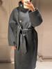 Nuevo Producto Transfronterizo en Stock Otoño e Invierno 2025, Elegante Cuello Alto de Gama Alta, Entallado a la Cintura, Abrigo Largo de Lana de Doble Faz con Cinturón