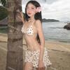 Nuevo traje de baño de bikini dividido de color sólido de tela de malla especial, traje de baño de moda sexy para playa, spa y vacaciones.