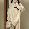 Suéter de cuello alto irregular de color sólido para mujer, otoño e invierno 2024, estilo coreano holgado y perezoso, parte superior de punto encerado suave y gruesa