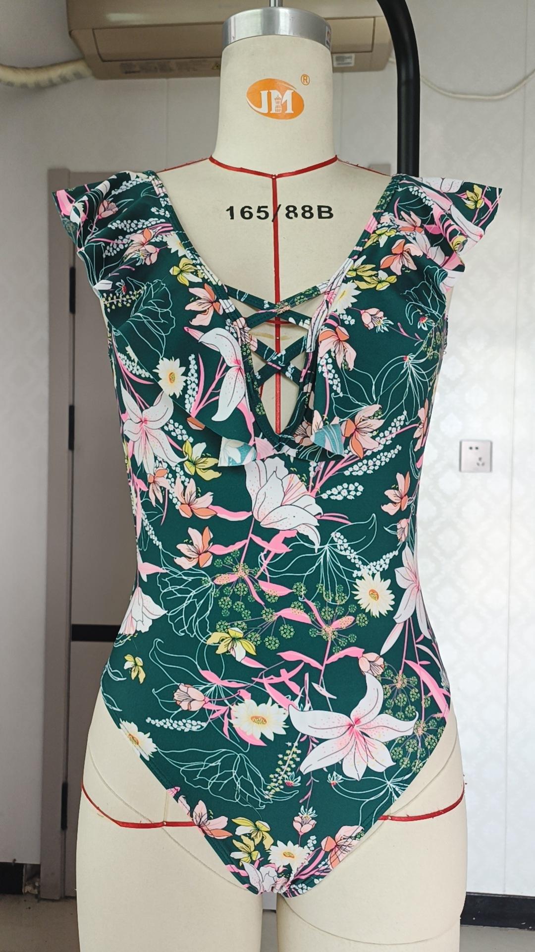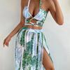 Traje de Baño Conservador Estampado Nuevo de Amazon 2024 para Mujer Bikini Europeo y Americano Sexy de Encaje Transfronterizo
