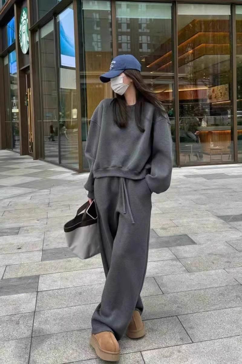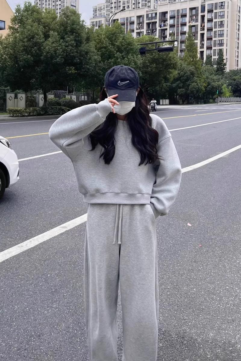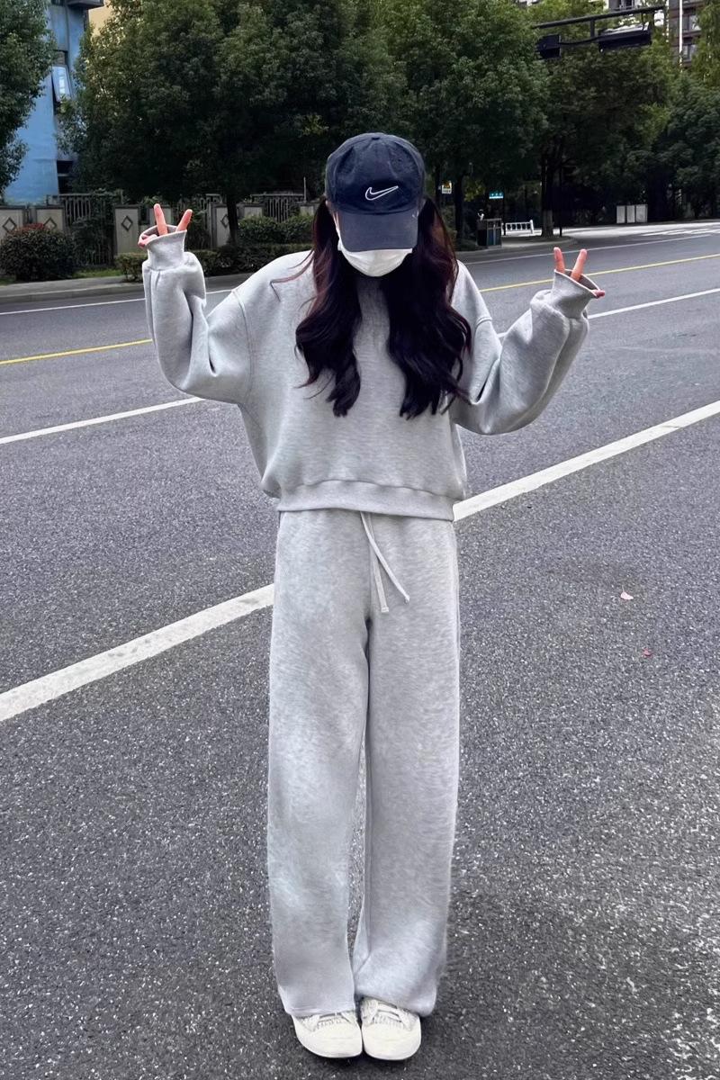 Sudadera estilo coreano, ropa deportiva informal, traje de mujer, moda de invierno, primavera y otoño, pantalones de pierna ancha, conjunto de dos piezas
