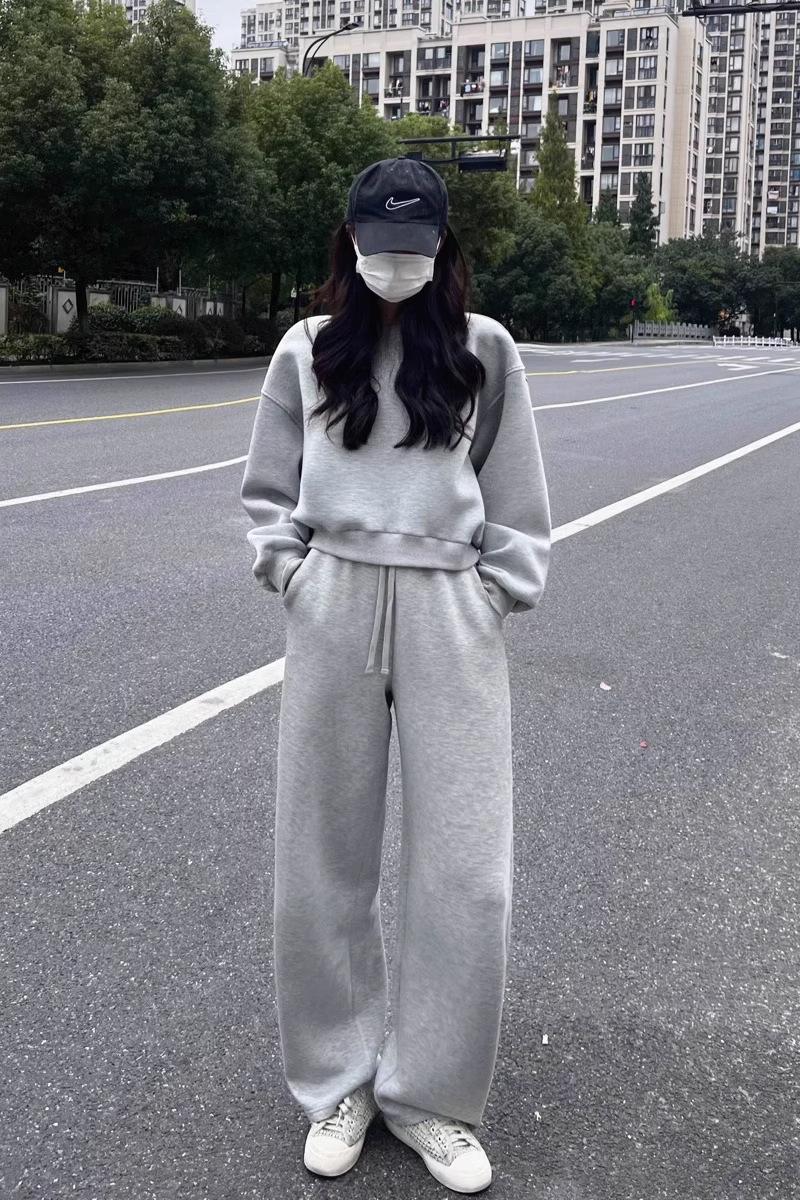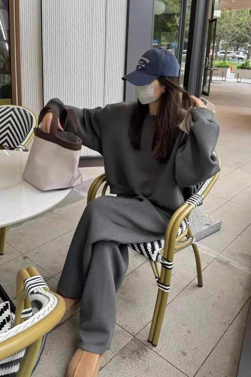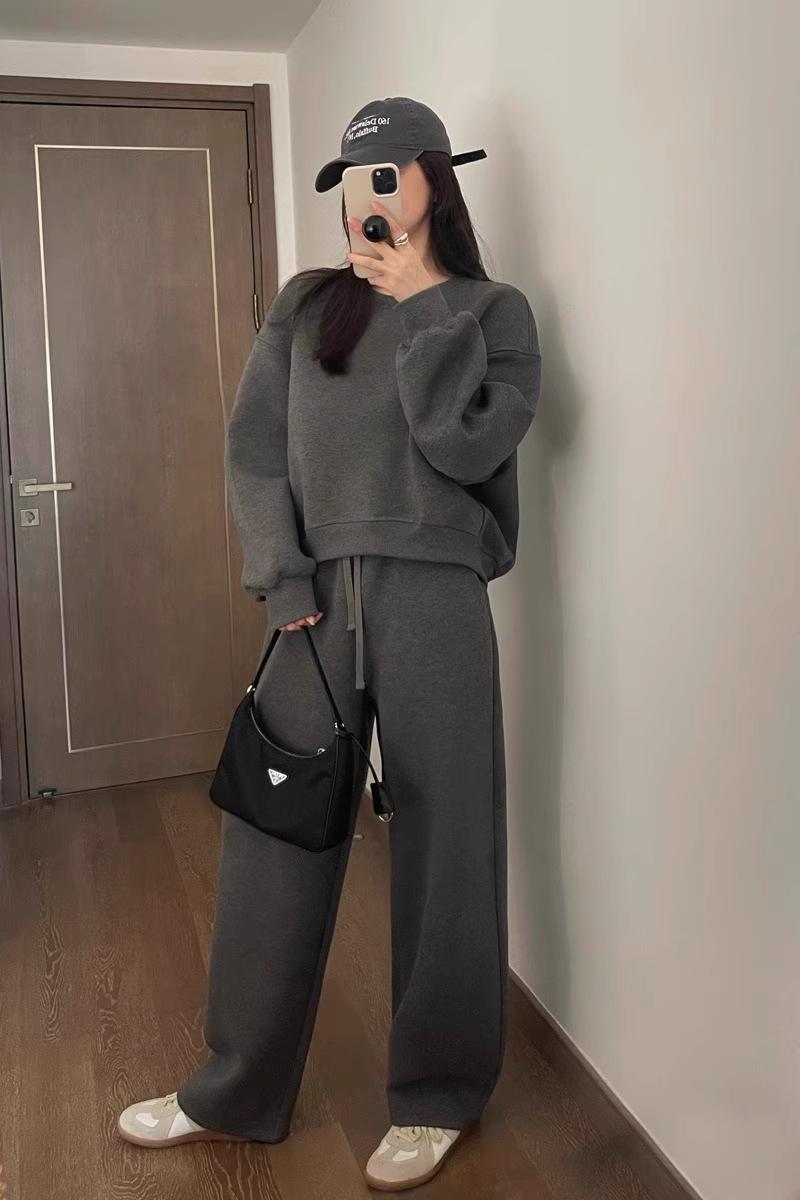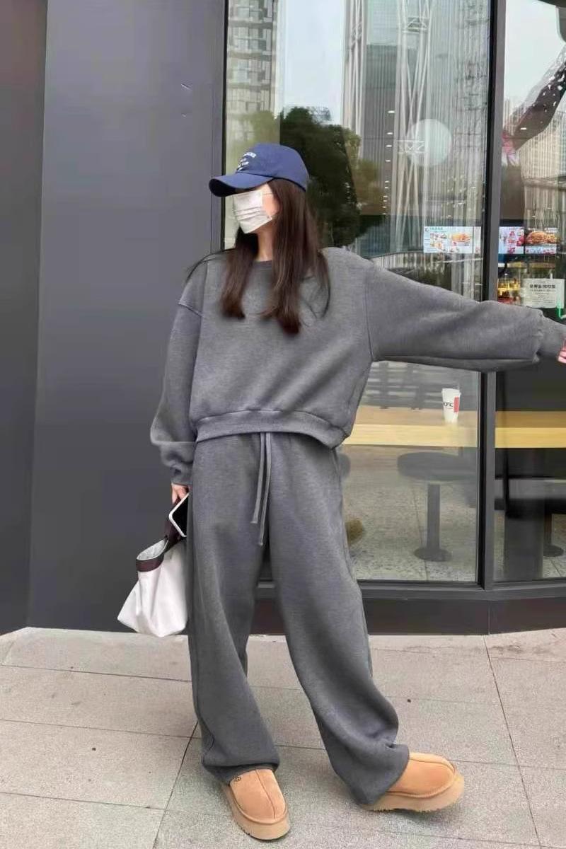 Sudadera estilo coreano, ropa deportiva informal, traje de mujer, moda de invierno, primavera y otoño, pantalones de pierna ancha, conjunto de dos piezas