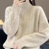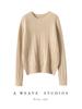 Suéter de lana de cintura alta para mujer, suéter de cuello redondo, suelto, holgado, de punto grueso, base de color sólido, otoño e invierno, nuevo