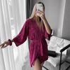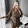 Cárdigan estampado de colores otoñales europeos y americanos 2024, camisón corto con cordones, ropa de casa holgada, casual y cómoda para mujer, venta al por mayor