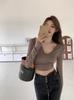Camiseta de otoño 2024 para mujer, corta, ajustada, de manga larga, con base interior, sexy, con escote en V y clavícula, combinable con todo.